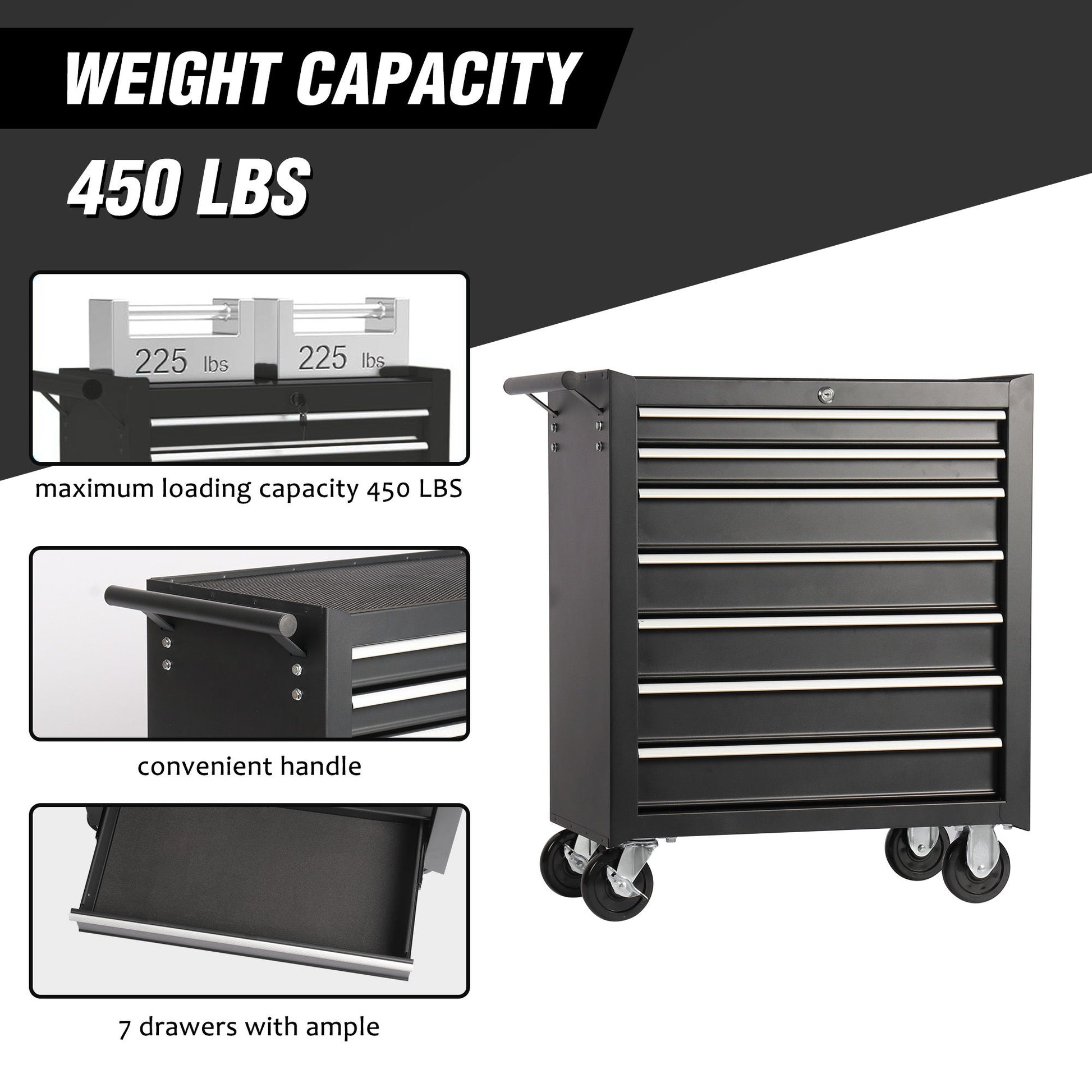 7 Drawer Rolling Tool Chest With Wheels, Multifunctional Tool Box And Storage Cabinet For Garage, Workshop, Or Repair Shop - Black