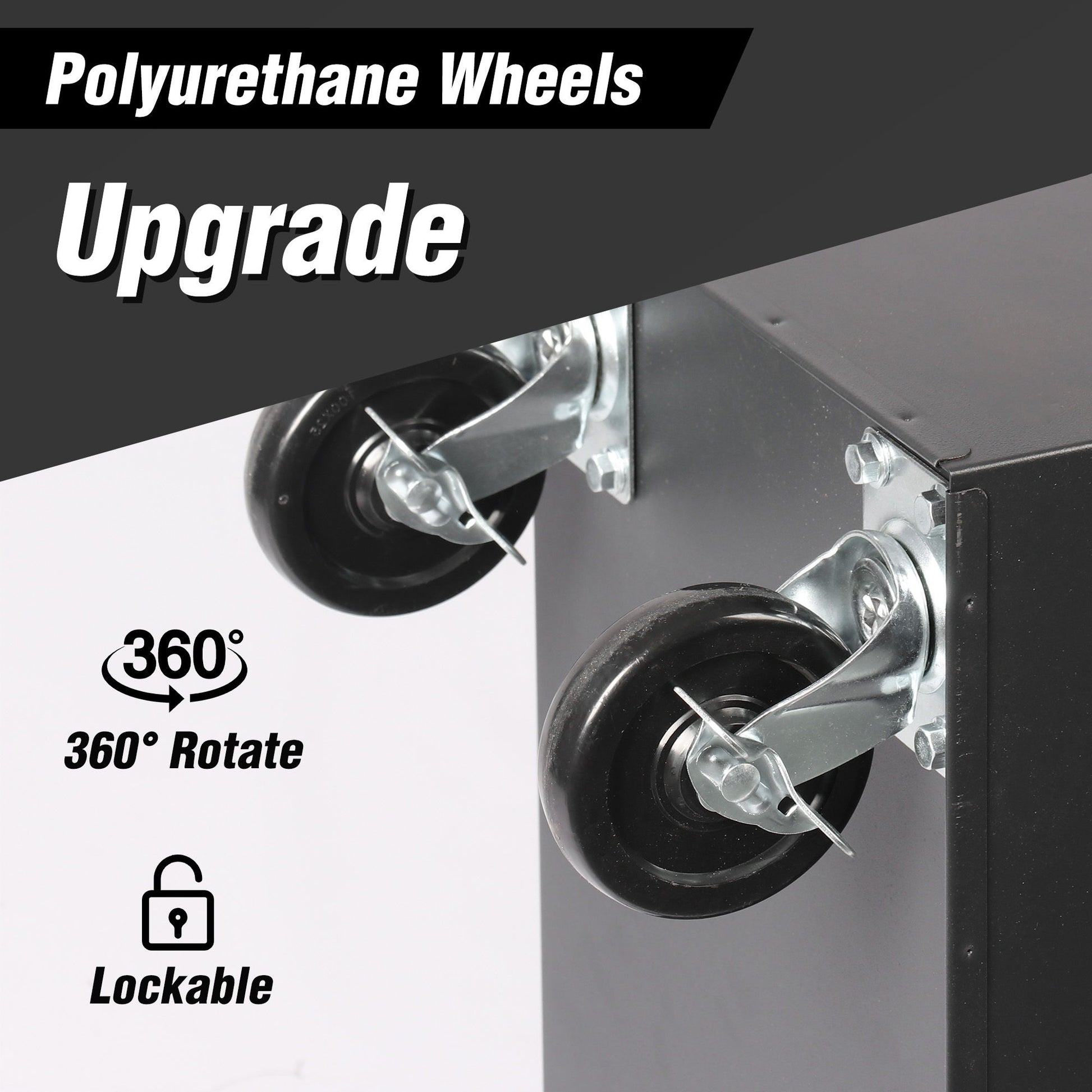 - Smooth Mobility: 4 swivel wheels (2 lockable) enable 360° maneuverability with parking stability, while ball-bearing slides ensure quiet, secure tool storage during movement.