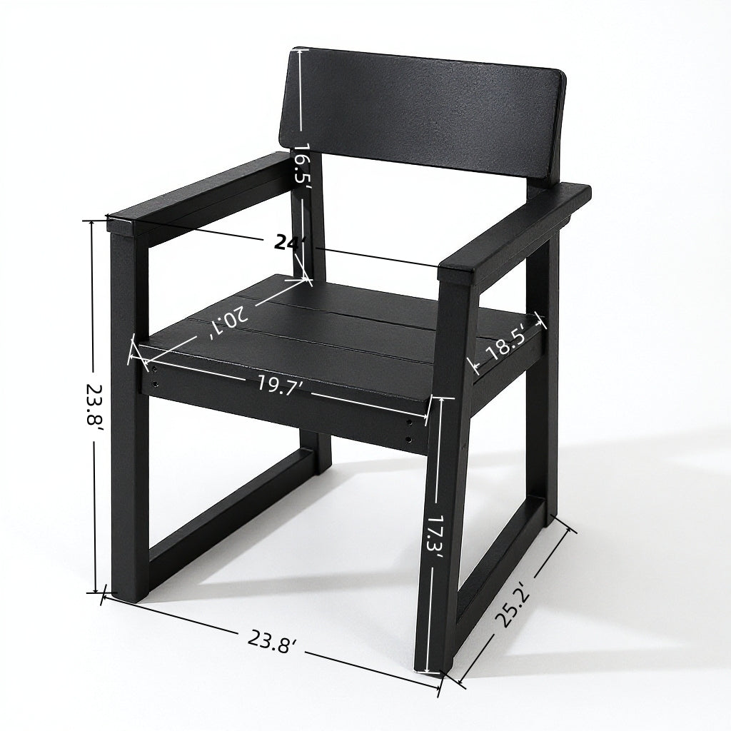 7-Piece HDPE Outdoor Dining Set for 6 – Weather-Resistant Patio Table with Umbrella Hole and 6 Armrest Chairs (Black)