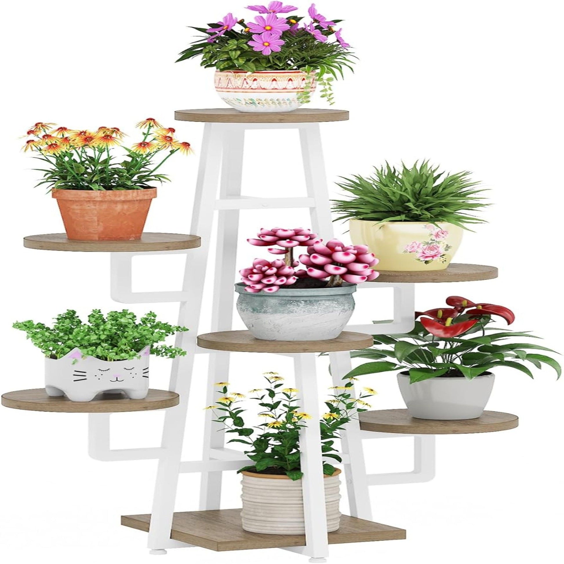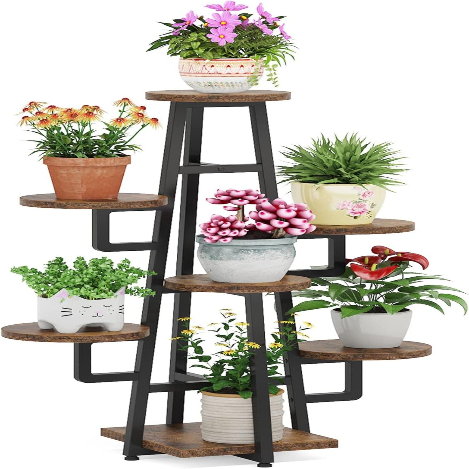 - Heavy-Duty Stability: Engineered wood with all-iron frame supports 45 lbs per shelf (200 lbs total), ensuring secure placement for multiple large planters.