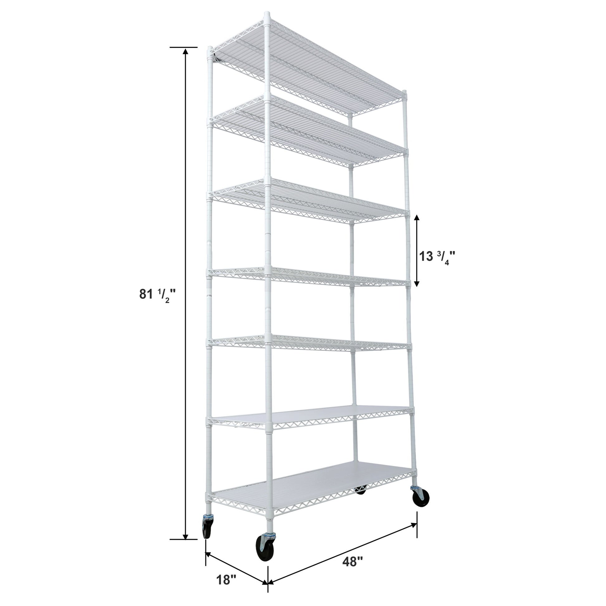7 Tier Metal Shelf Wire Shelving Unit, 2450Lbs Heavy Duty Adjustable Storage Rack With Wheels & Shelf Liners For Closet Kitchen Garage Basement Commercial Shelving - White