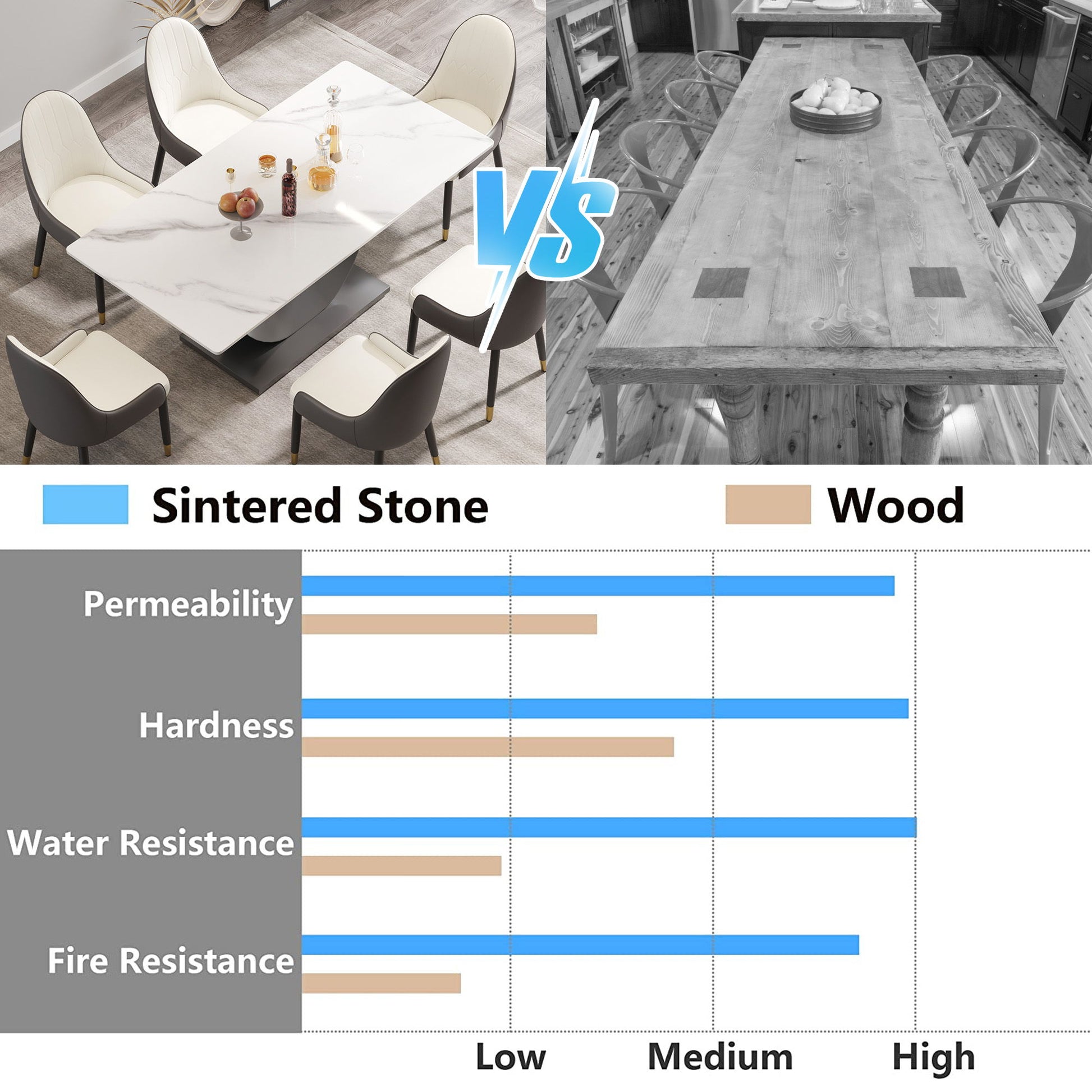 - Durable Surface: The 12mm thick sintered stone tabletop is heat, fire, and stain-resistant, ensuring years of reliable use.