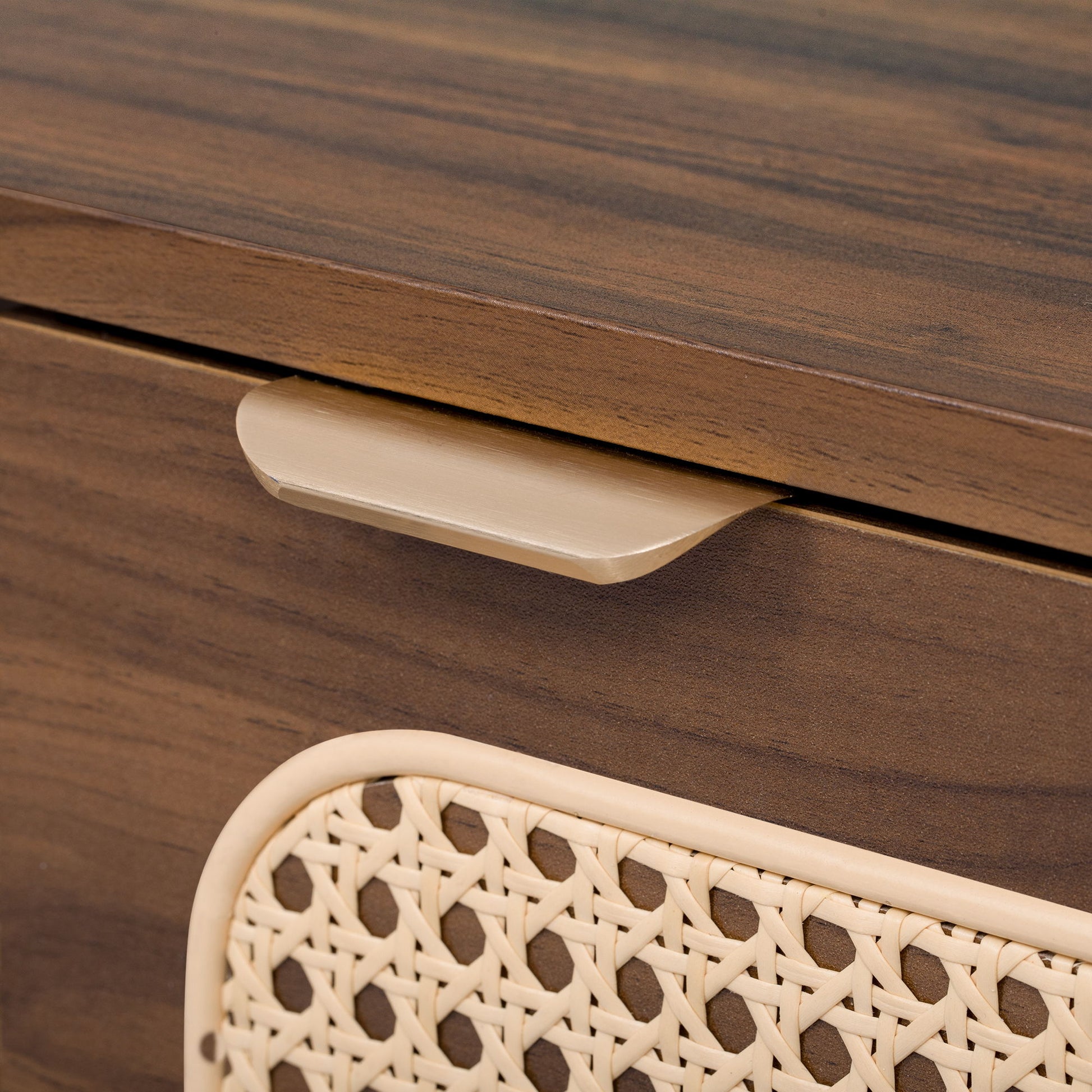 - Smart Storage: Combines open shelves with three rattan-covered cabinets and one drawer for organized, accessible storage.