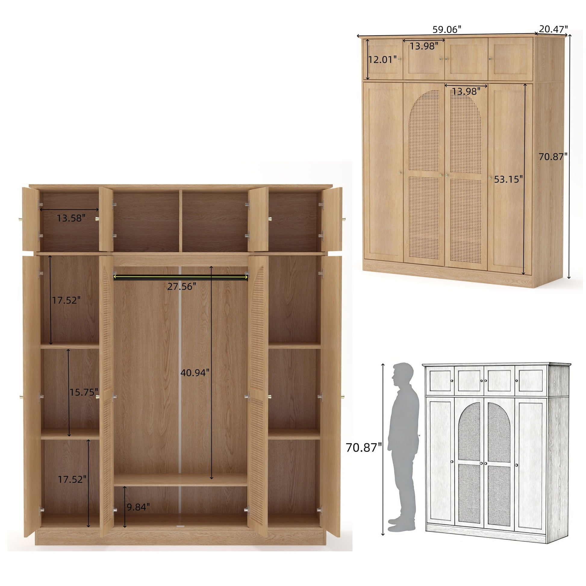 - Rattan Decorative Doors: Woven rattan accents on the doors add natural texture and visual interest, enhancing the room's ambiance.