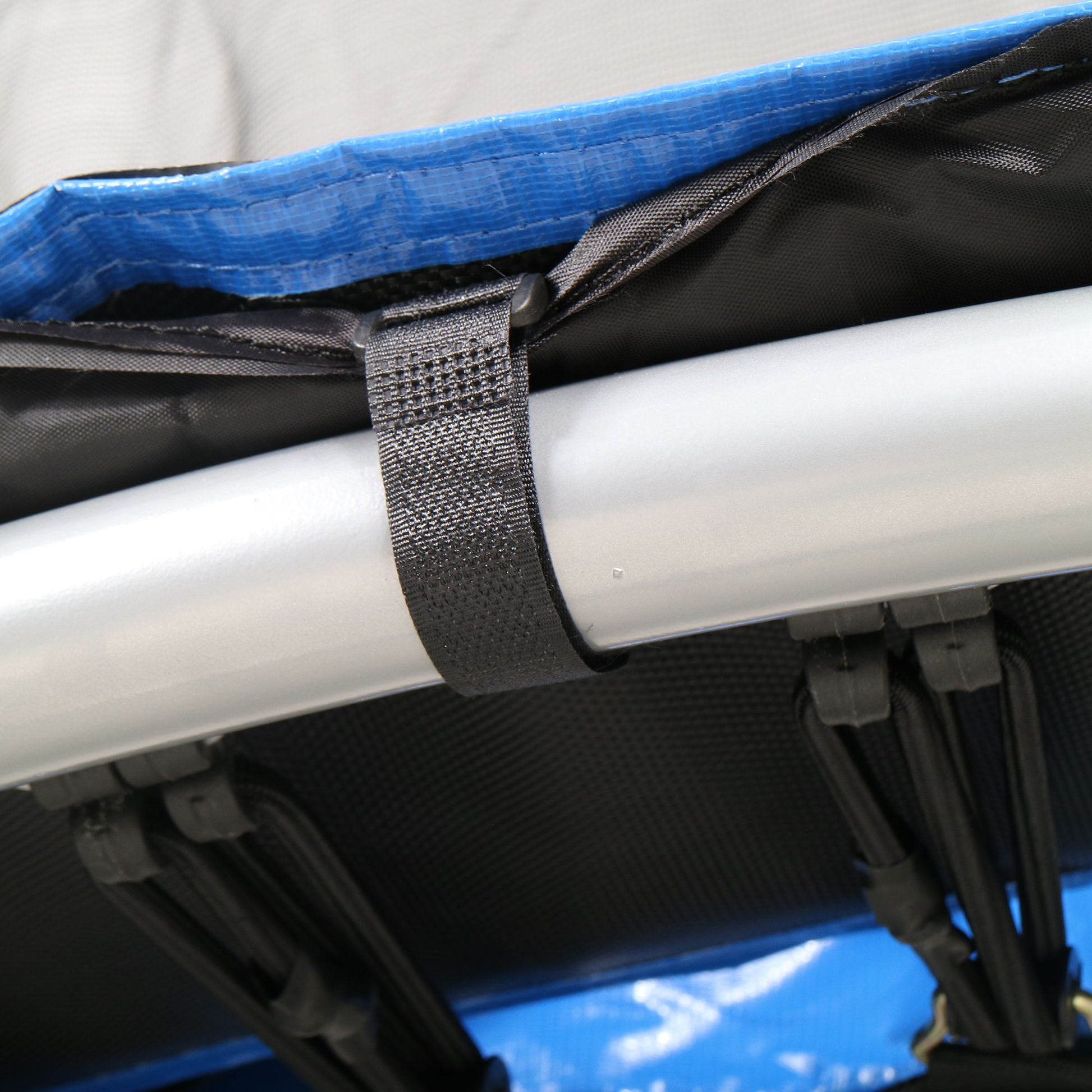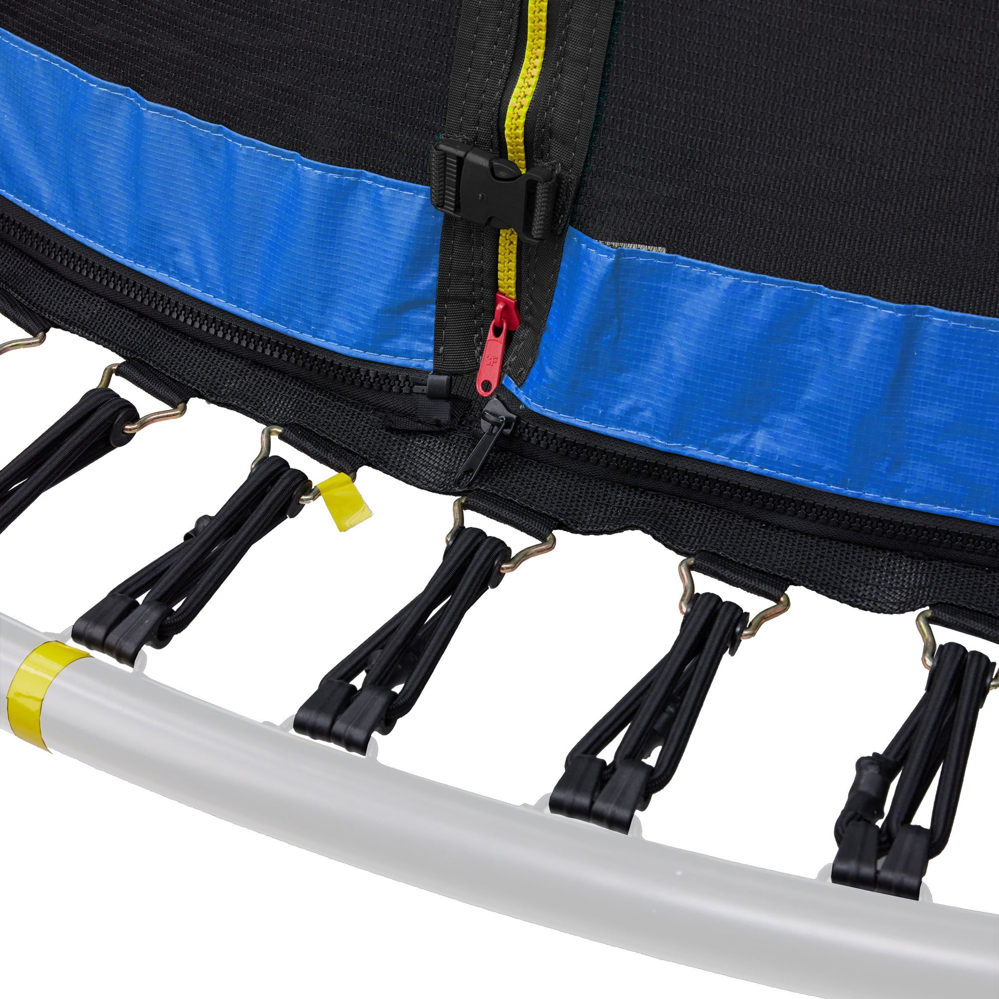 - High-Strength Pad: The trampoline pad is made from high-strength polypropylene fabric that is UV resistant, water-permeable, and lasts 6-8 times longer than regular foam pads, ensuring long-term use.