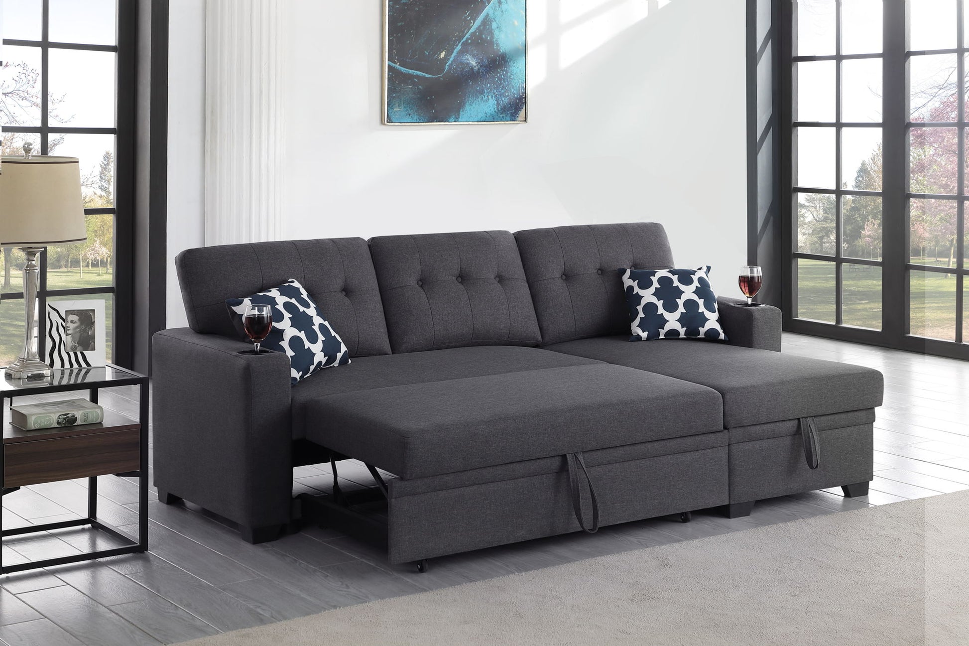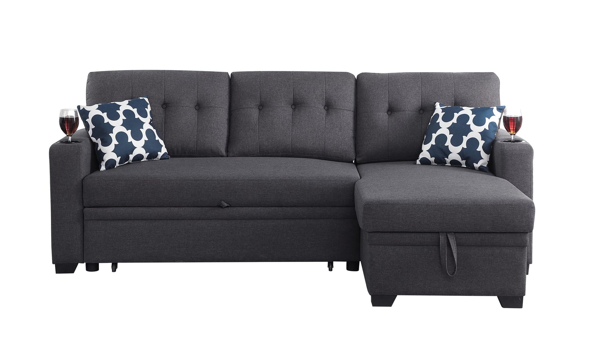 Sectional With Storage Chaise And Cupholder Armrest - Dark Gray
