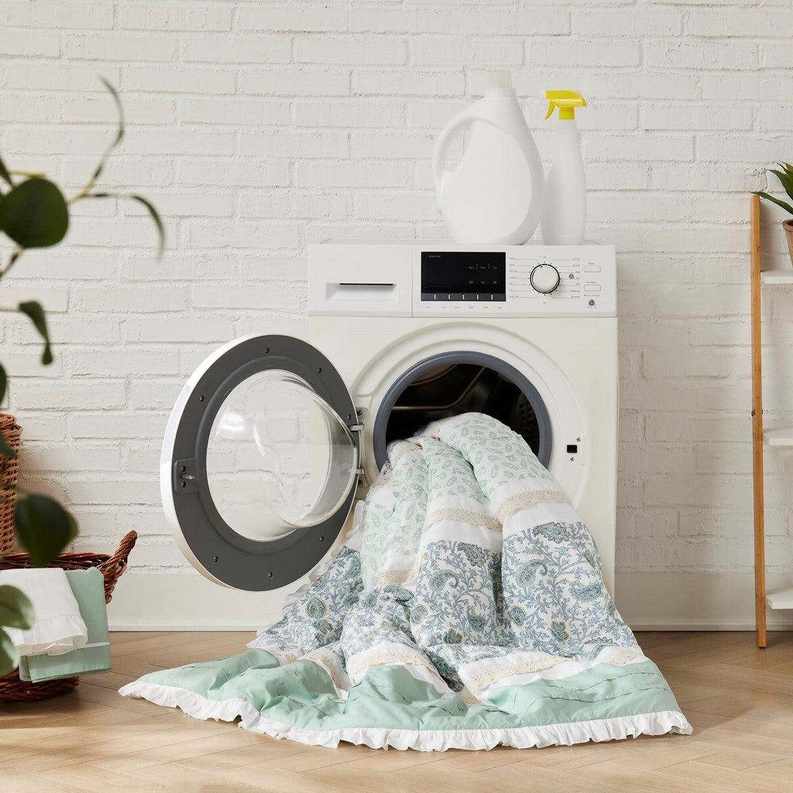 The 9 Piece Cotton Percale Comforter Set Aqua by GigaTech is designed to refresh your bedroom with shabby chic style and soothing farmhouse charm. This complete bedding set features a comforter, shams, bedskirt, and decorative pillows to create a cohesive and elegant look.