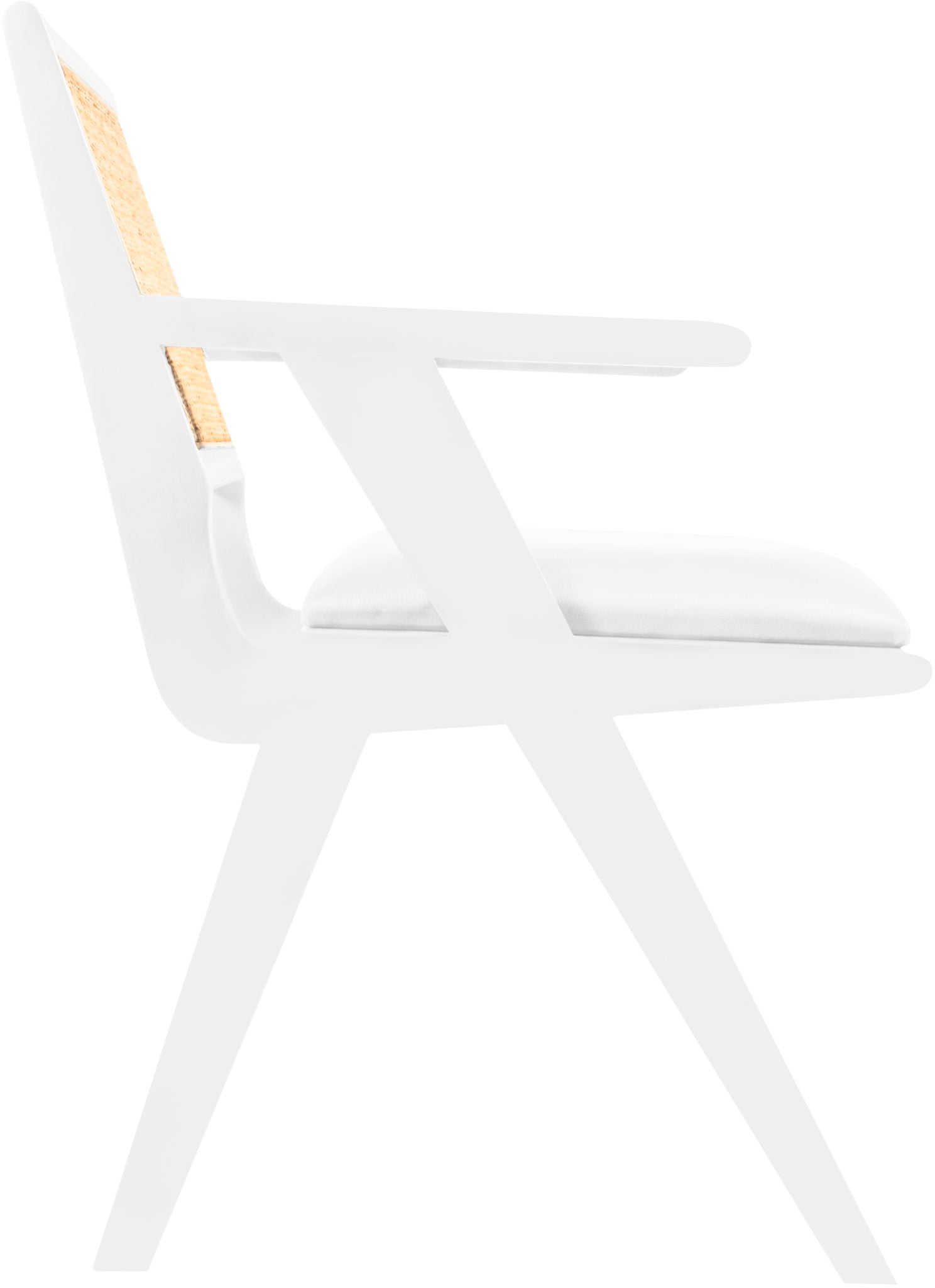 Sit back and relax in this armchair from Meridian Furniture's Abby collection. Featuring a frame crafted from solid wood with a natural finish and a vegan leather seat, this chair is both sturdy and durable so it will last you for years to come. A natural cane backrest seamlessly blends with the chair's natural-finished frame, adding a sense of warmth and charm that ensures it will stand out among all your furniture.