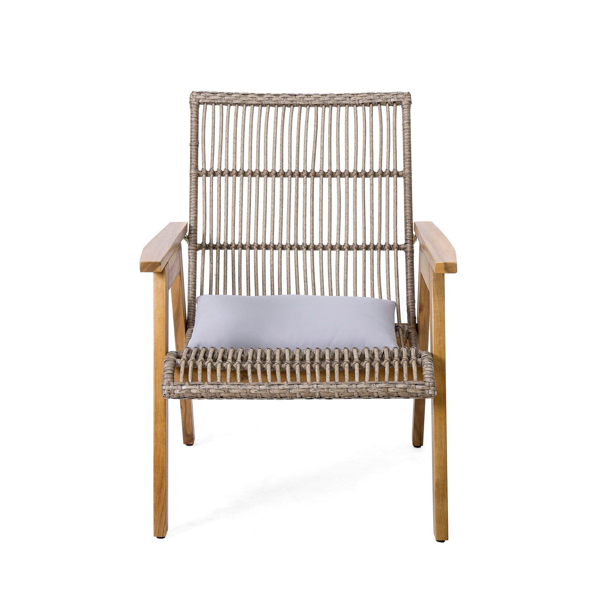 - Material Composition: Crafted with a blend of Acacia wood and wicker, these chairs offer natural warmth and modern durability, perfect for stylish outdoor lounging.