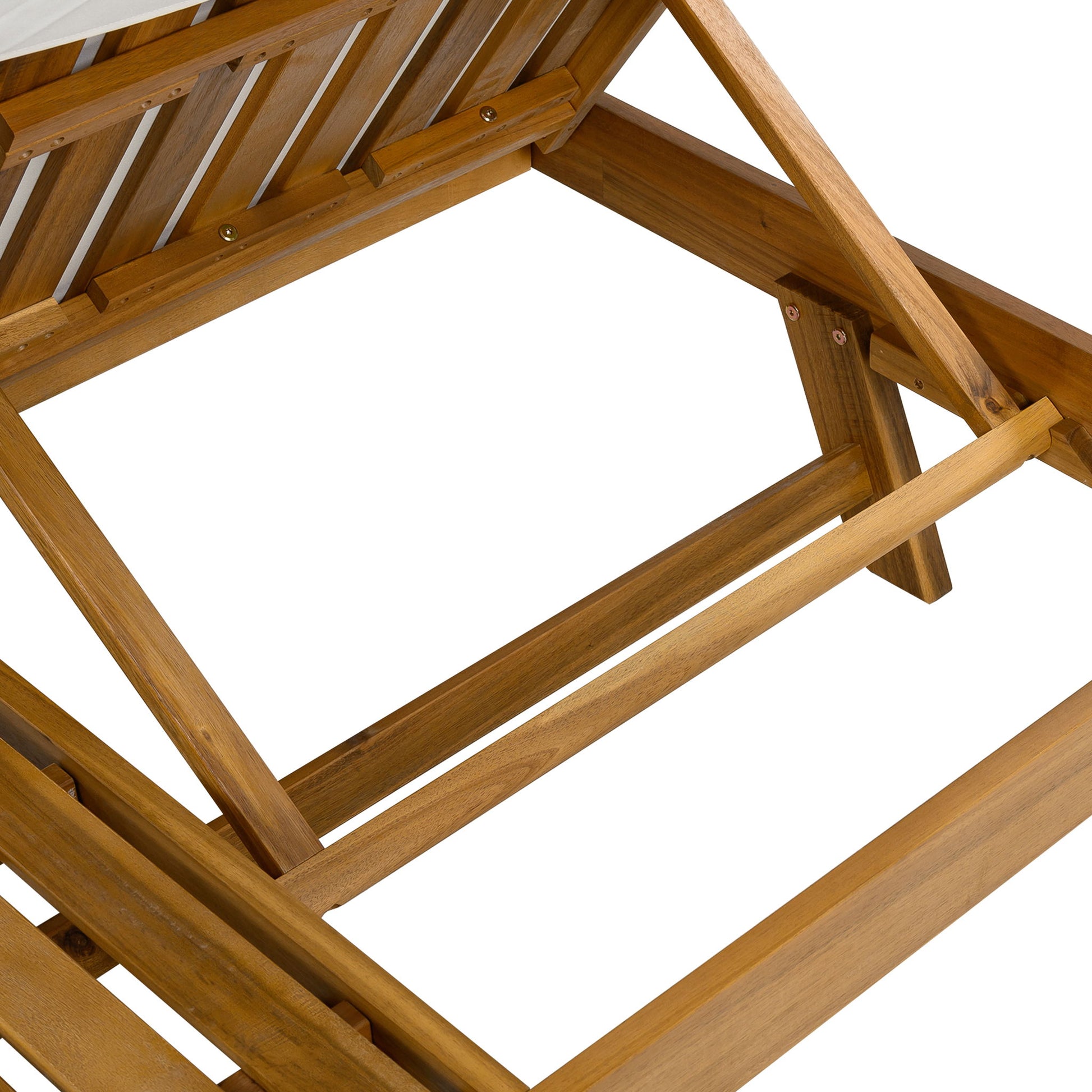 Acacia Wood Lounge Chaise Set With Headrest And Water Resistant Cushions - Beige