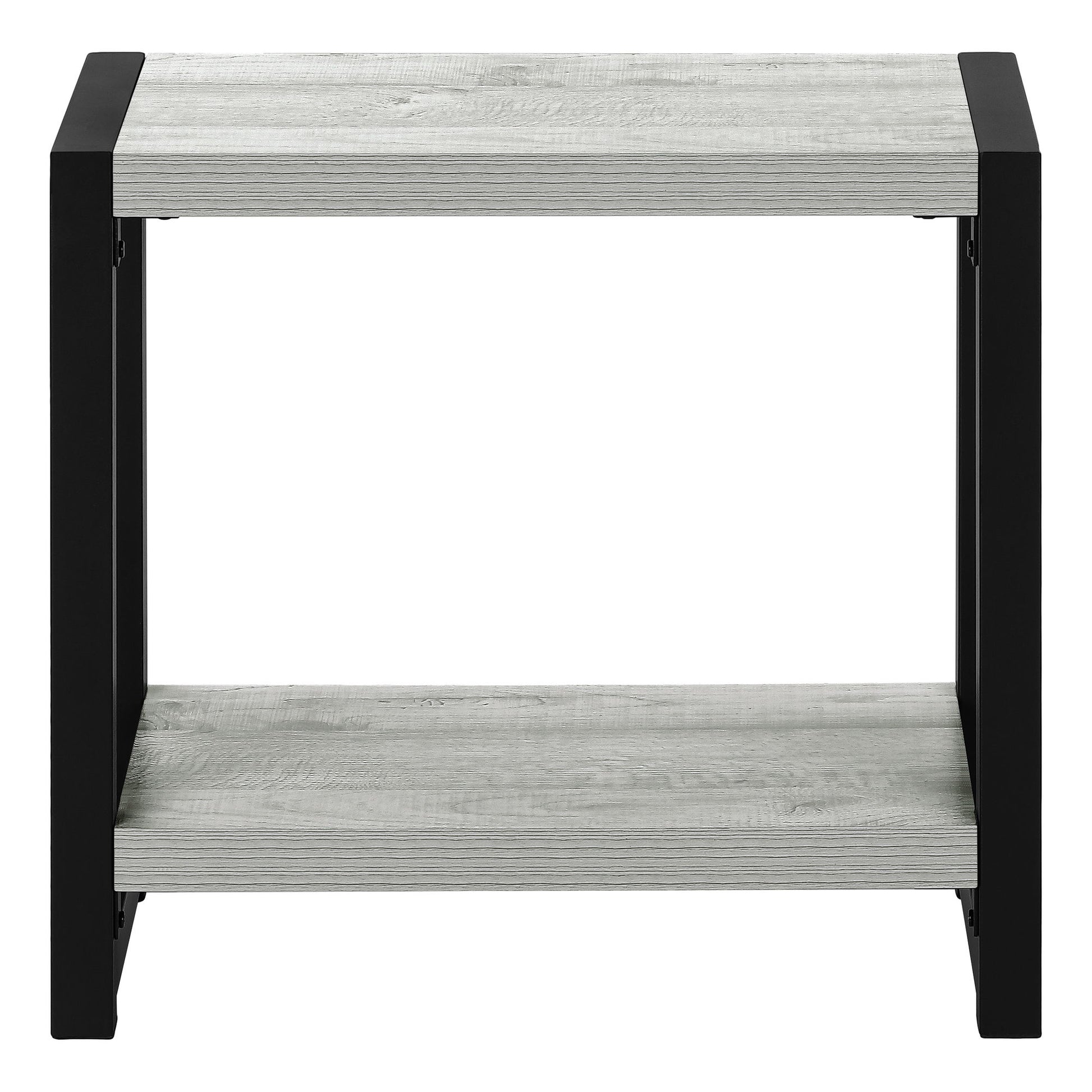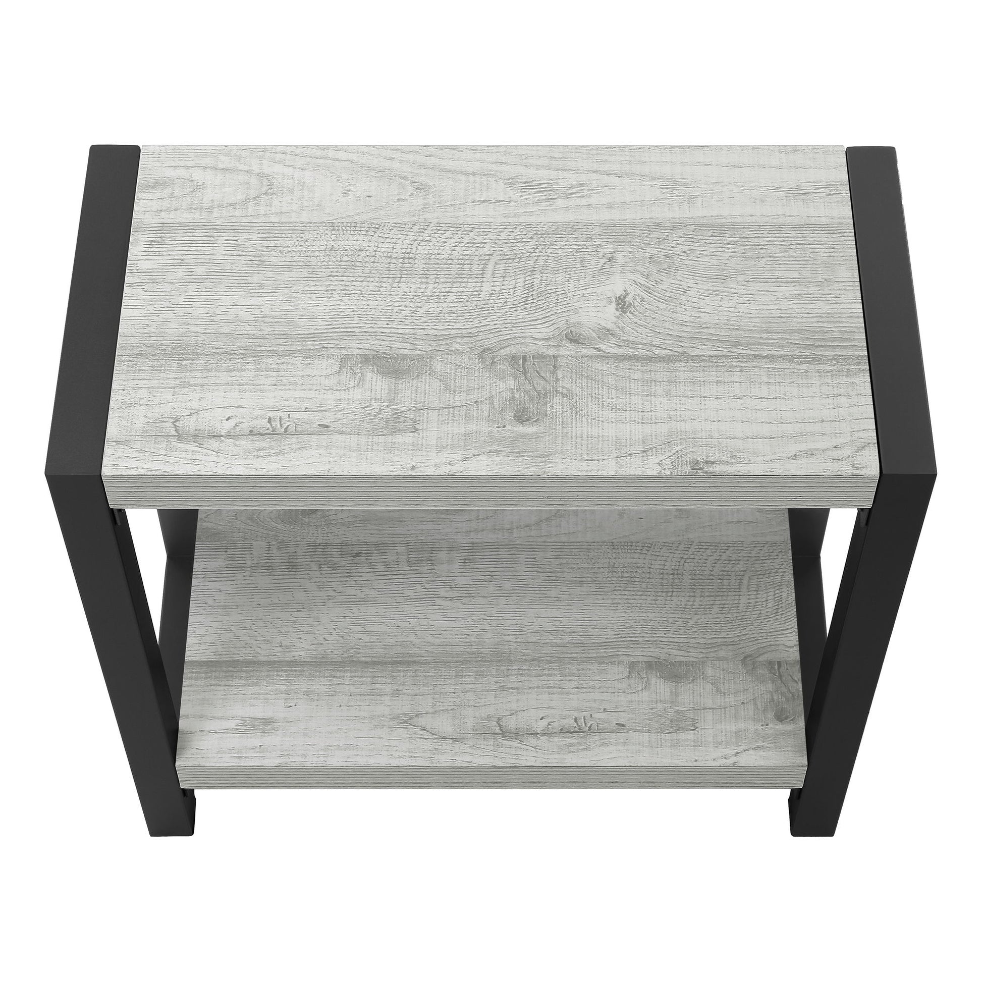 - Design and Finish: This 2-tier accent table features a thick, rectangular tabletop and a fixed lower shelf in a wood-look finish. The wood-grain texture adds a natural and contemporary appeal to the design.