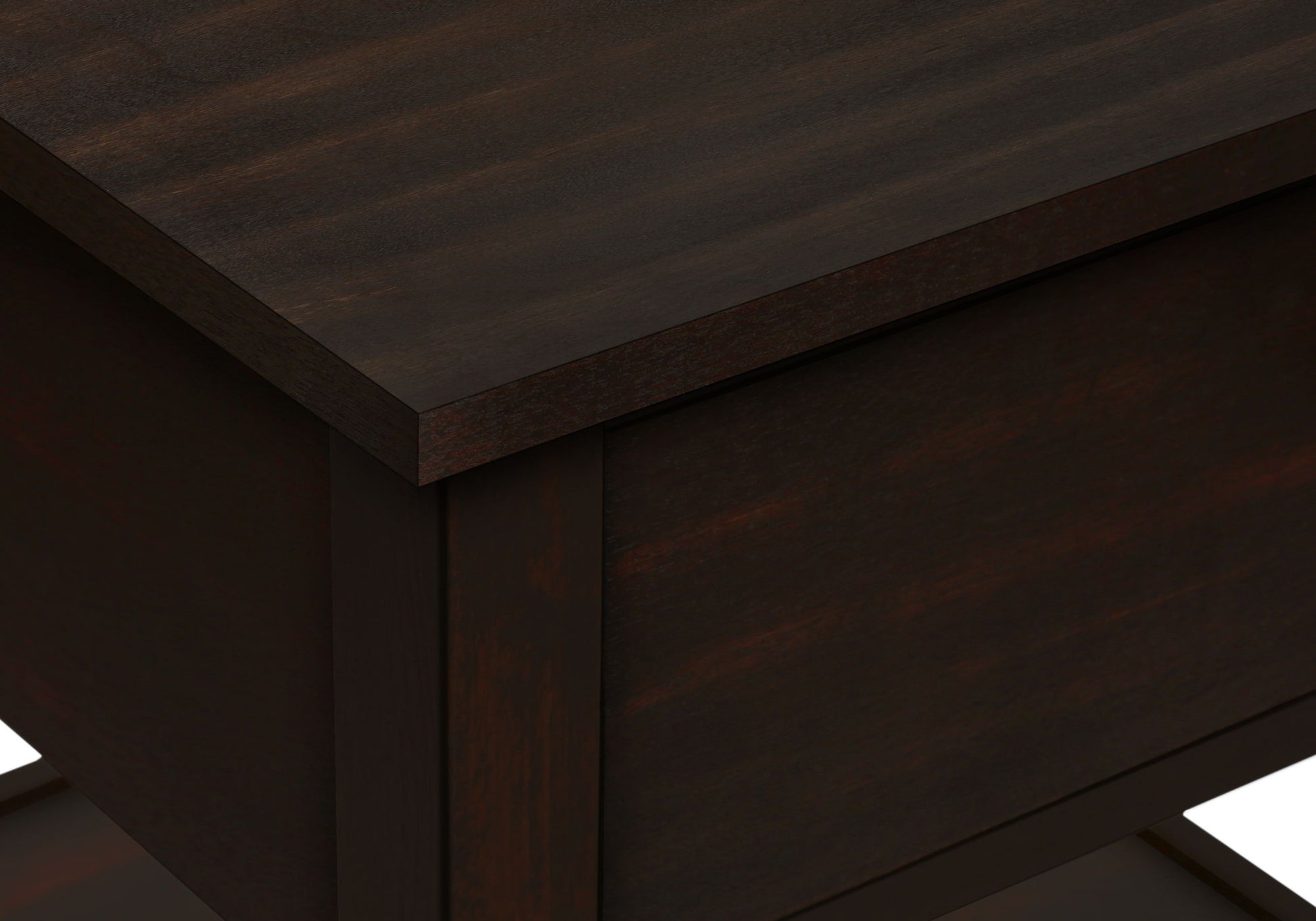 - Ample Storage: The 2-tier design offers plenty of storage and display space, including a spacious drawer with a classic bronze metal knob and a bottom shelf ideal for books or decorative objects.
