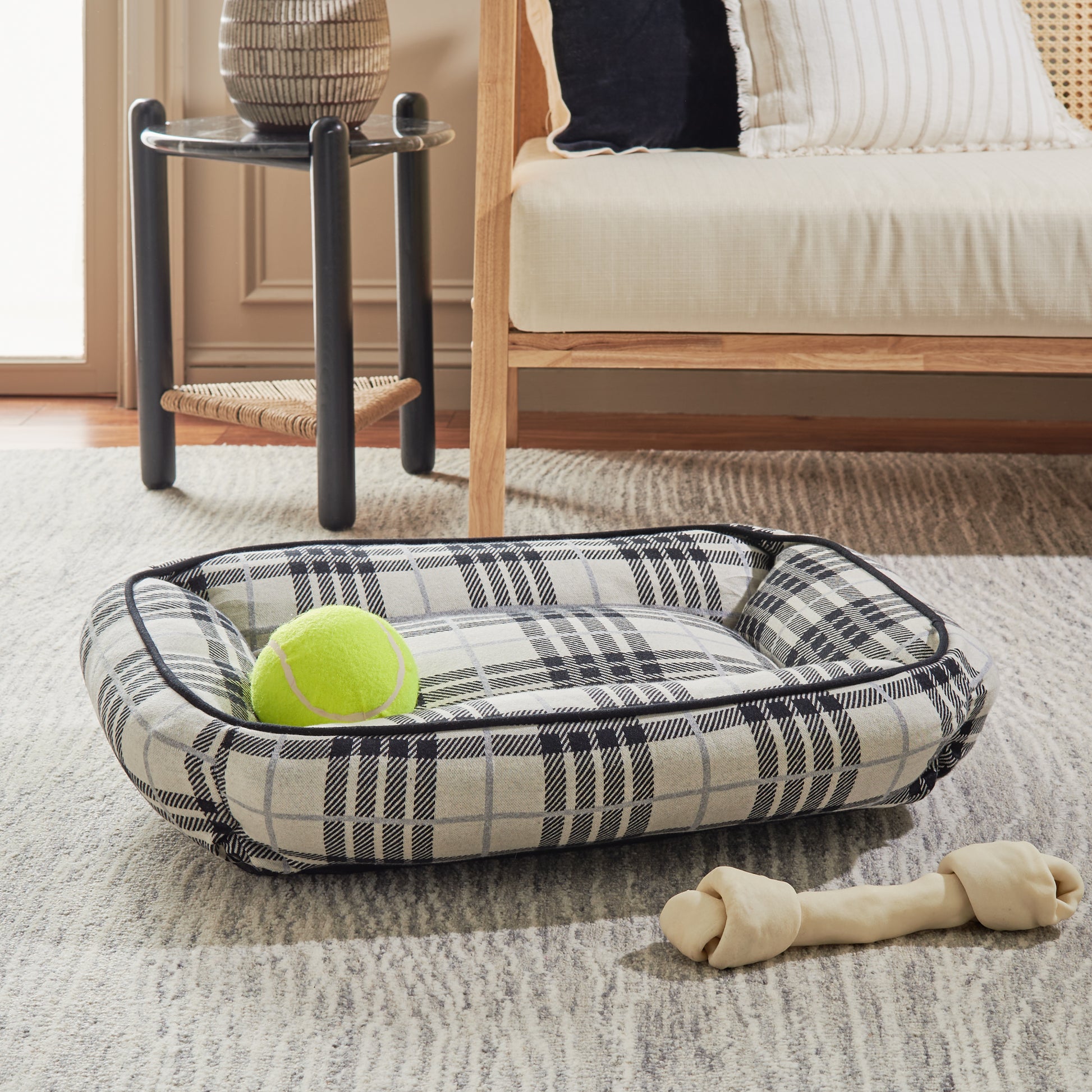 Treat your pawed pal to unmatched luxury with the Adair Dog Bed in classic ivory and black. Expertly crafted in India, this rectangular haven spans a cozy size and stands at a plush height. The cotton cover and soft polyester filling offer a softness that your dog will adore. Plus, it's completely washable, ensuring maintenance is a breeze. Designed with a cotton backing, this bed promises enduring comfort and style. Choose the Adair Dog Bed for a soft, plush retreat that your furry friend will thank you for.