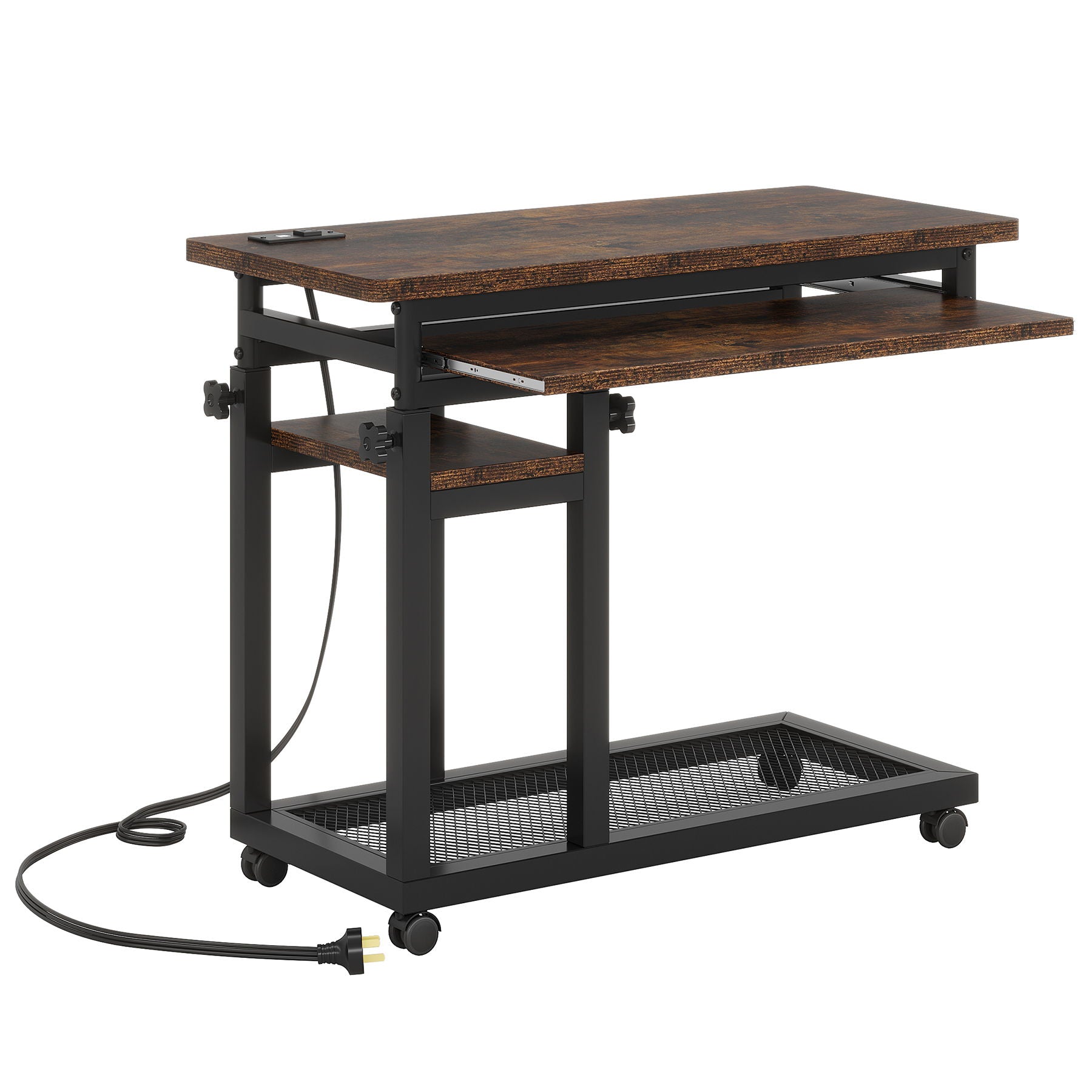 Adjustable Portable C Shaped Desk With Power Outlet & USB Ports, Rolling Standing Desk - Brown / Black