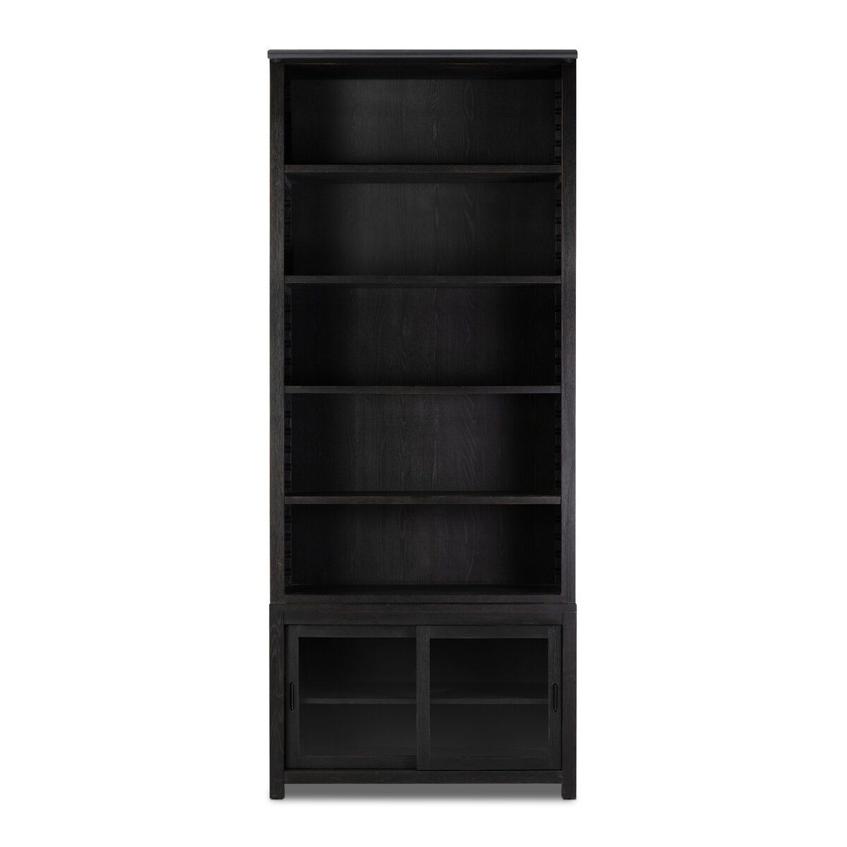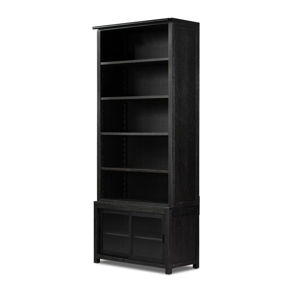 Stately in presence and rich in character, the Four Hands Admont Bookcase draws from the timeless elegance of traditional European libraries. Crafted from solid oak, its tall, architectural profile is finished in a worn black that lends a sense of history and quiet sophistication, anchoring the room with depth and visual weight.