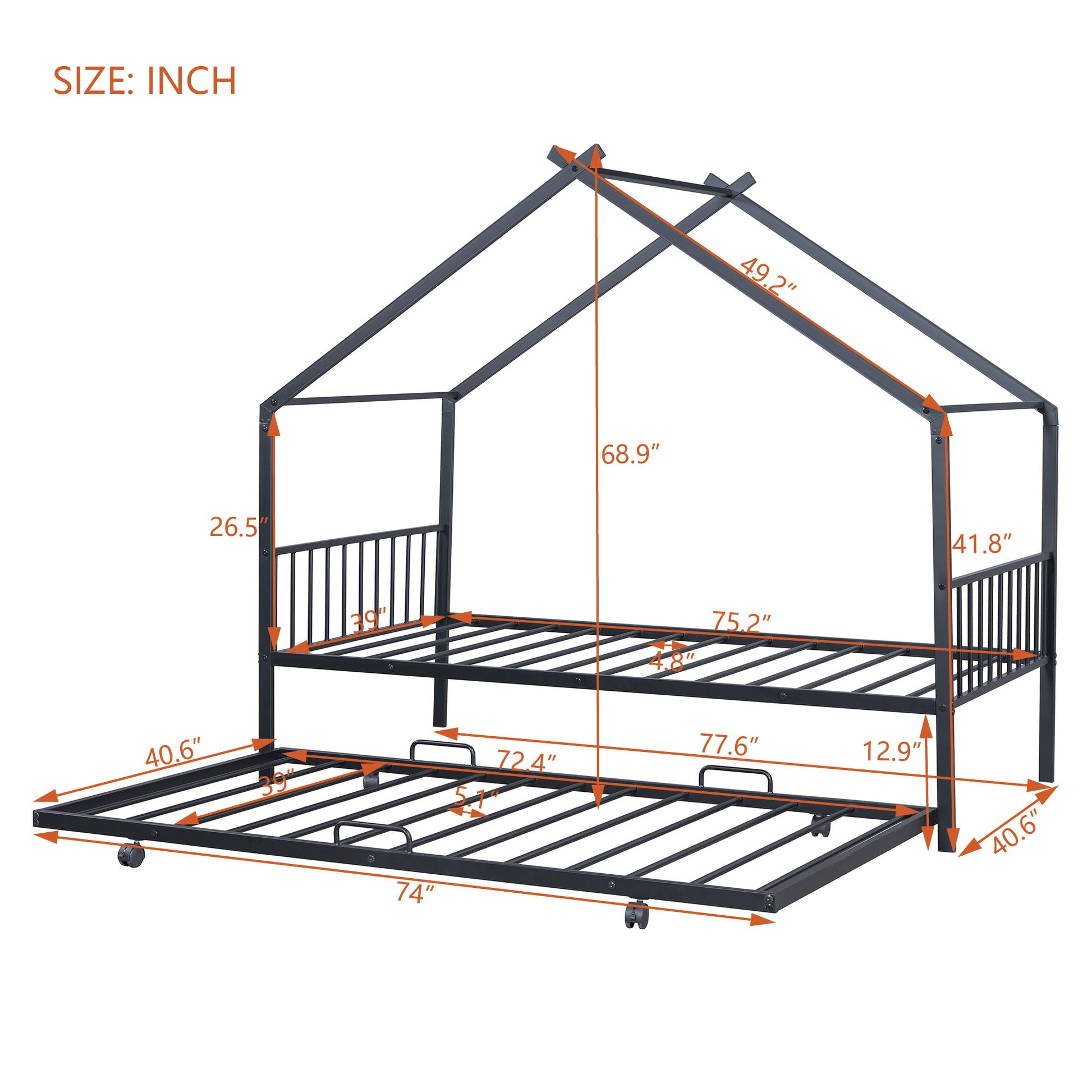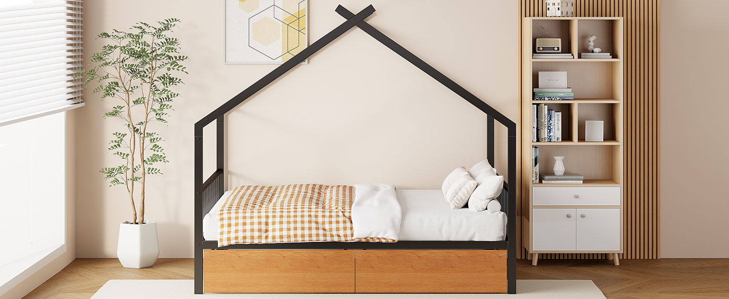 Superior Quality: Constructed with a sturdy metal frame, this house bed ensures enhanced stability and durability. It includes slats, so there is no need for additional box springs or foundations.