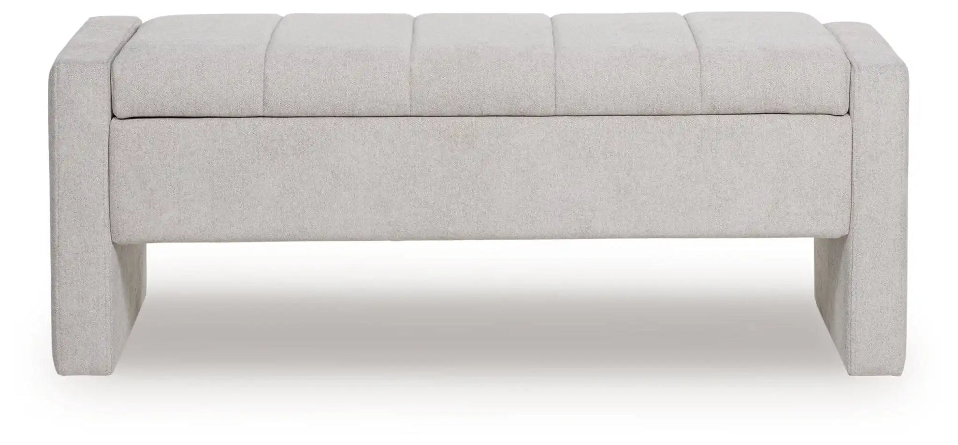 Whether gracing an entryway or sitting pretty in a main living area, this comfortably cushioned upholstered storage bench is packed with possibilities. Its clean, unfussy silhouette strikes a highly contemporary pose. Lift the hinged seat to reveal ample storage for your pillows, throws and everything in between.