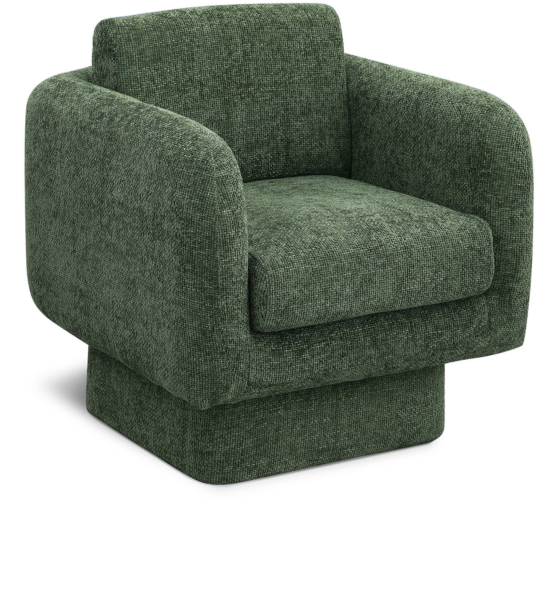 Seat guests in total comfort with this Alessandra chenille fabric swivel accent chair. Beautiful chenille cross-hatched fabric upholstery lets this fabulous chair blend seamlessly with existing furnishings. Overstuffed sides, back and seat cushions make this chair a comfortable delight to sit in while the swivel feature adds convenience to the design. Add it to an empty corner to create an inviting reading nook, or add it alongside a sofa or sectional for additional seating.