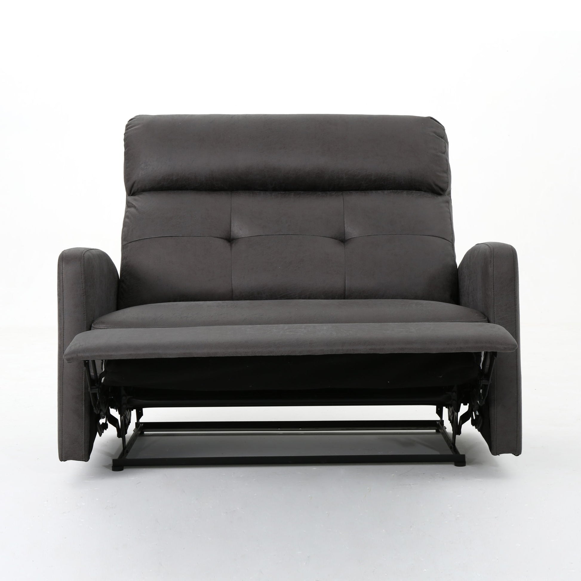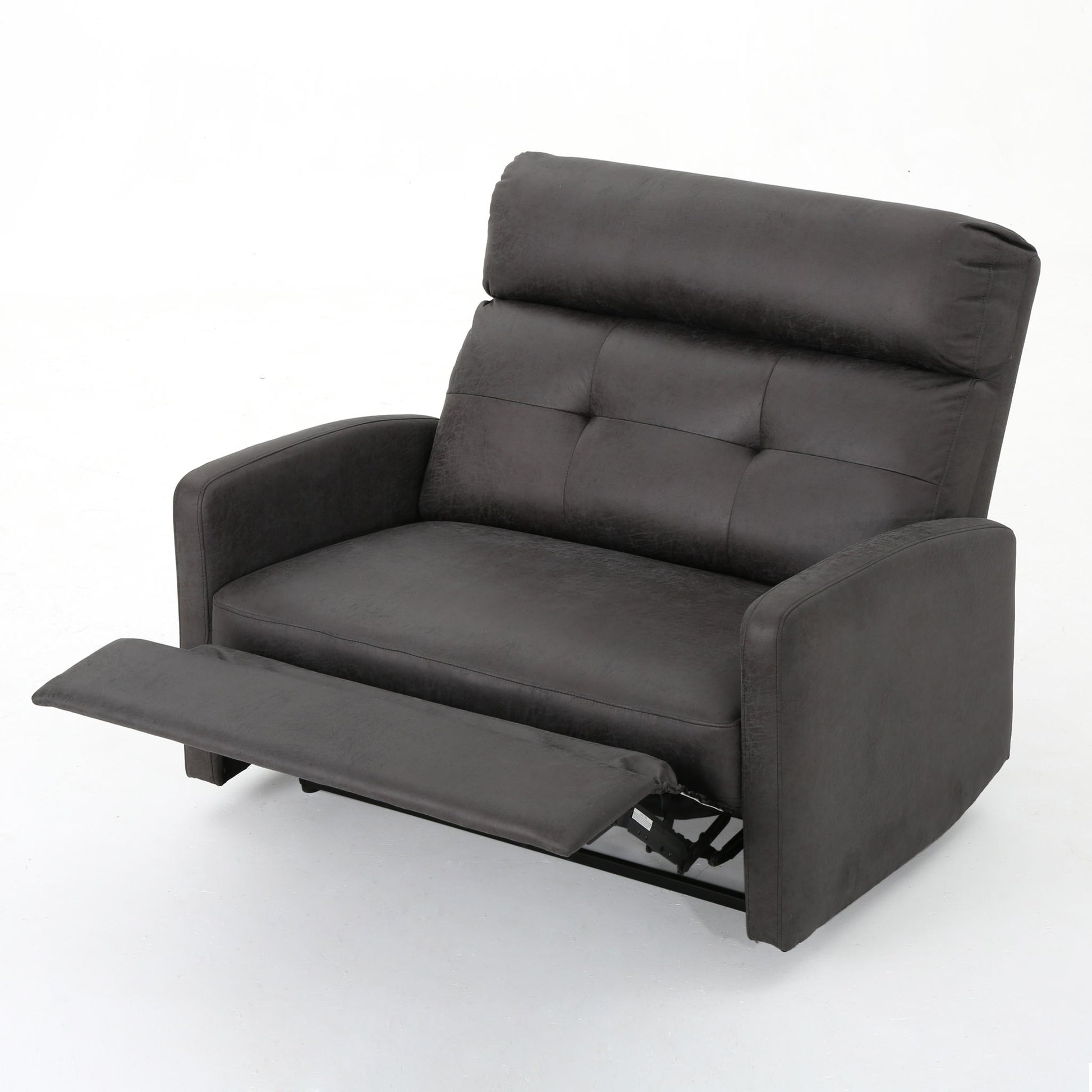 - Contemporary Elegance: This reclining loveseat combines modern aesthetics with refined details like track armrests, waffle stitching, and button tufting for a sleek, sophisticated look that elevates any living space effortlessly.