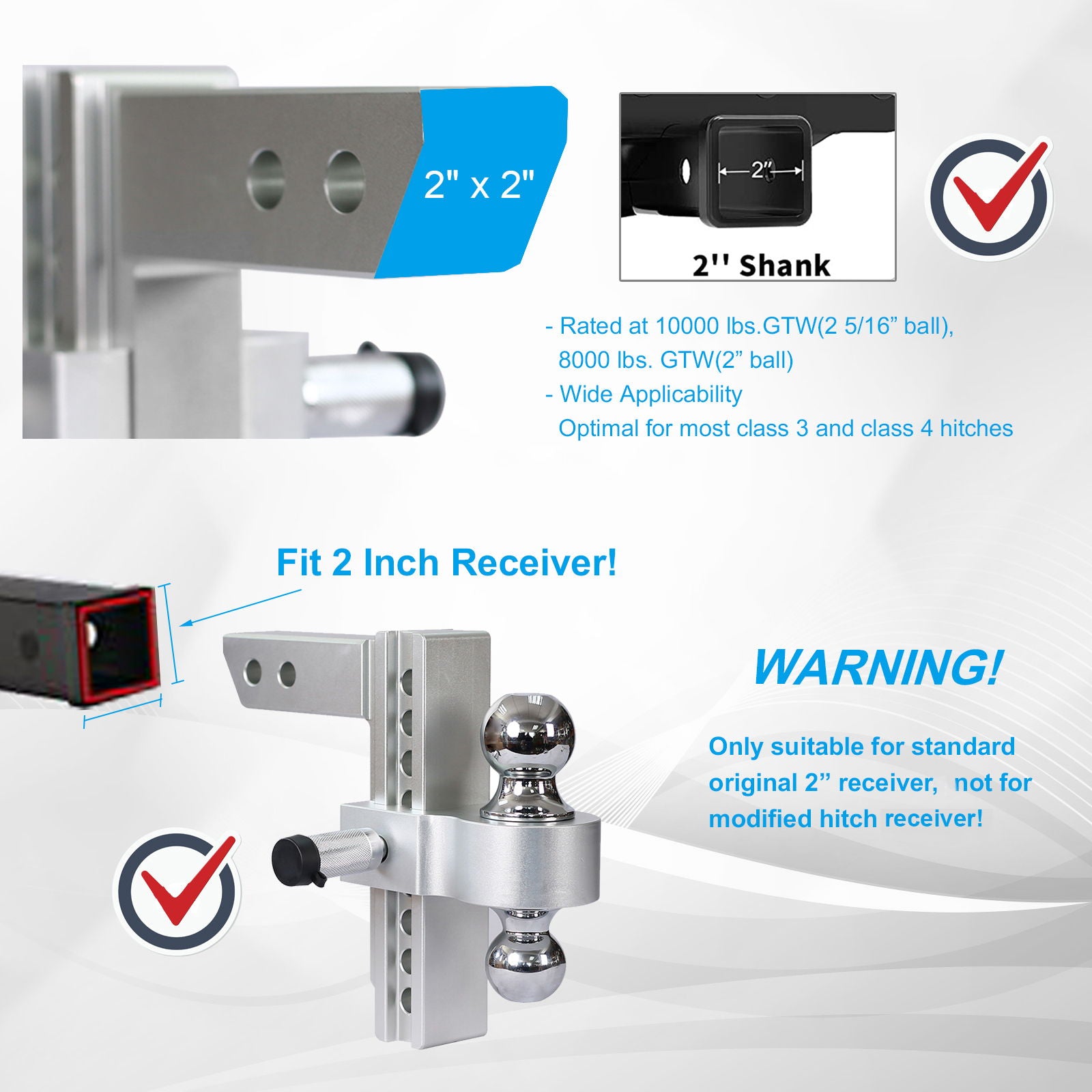 Alu - Adjustable Trailer Drop Hitch 2" Receiver 8" Adjustable - Silver