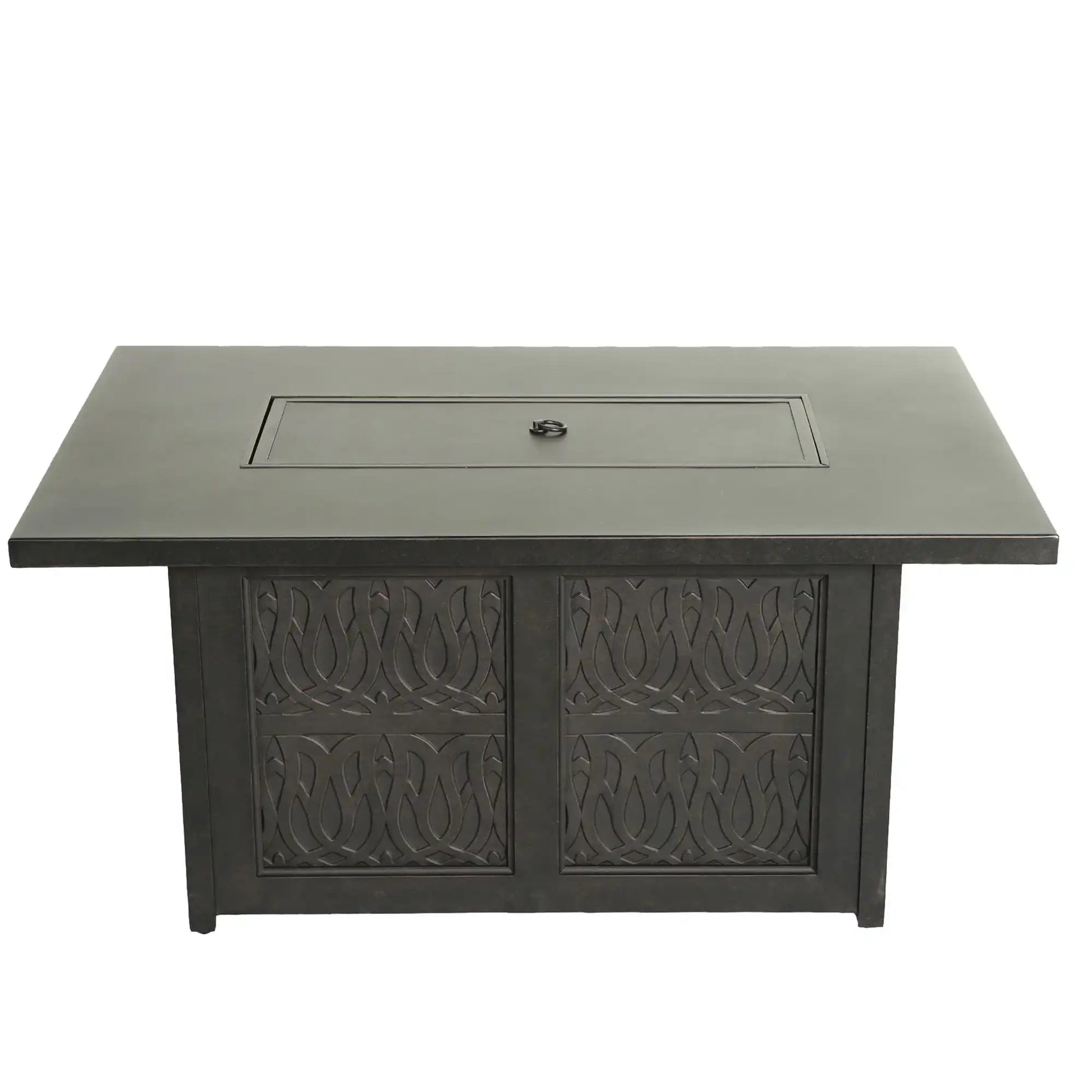 Aluminum Rectangle Fire Table With Fire Glass And Cover - Antique Bronze