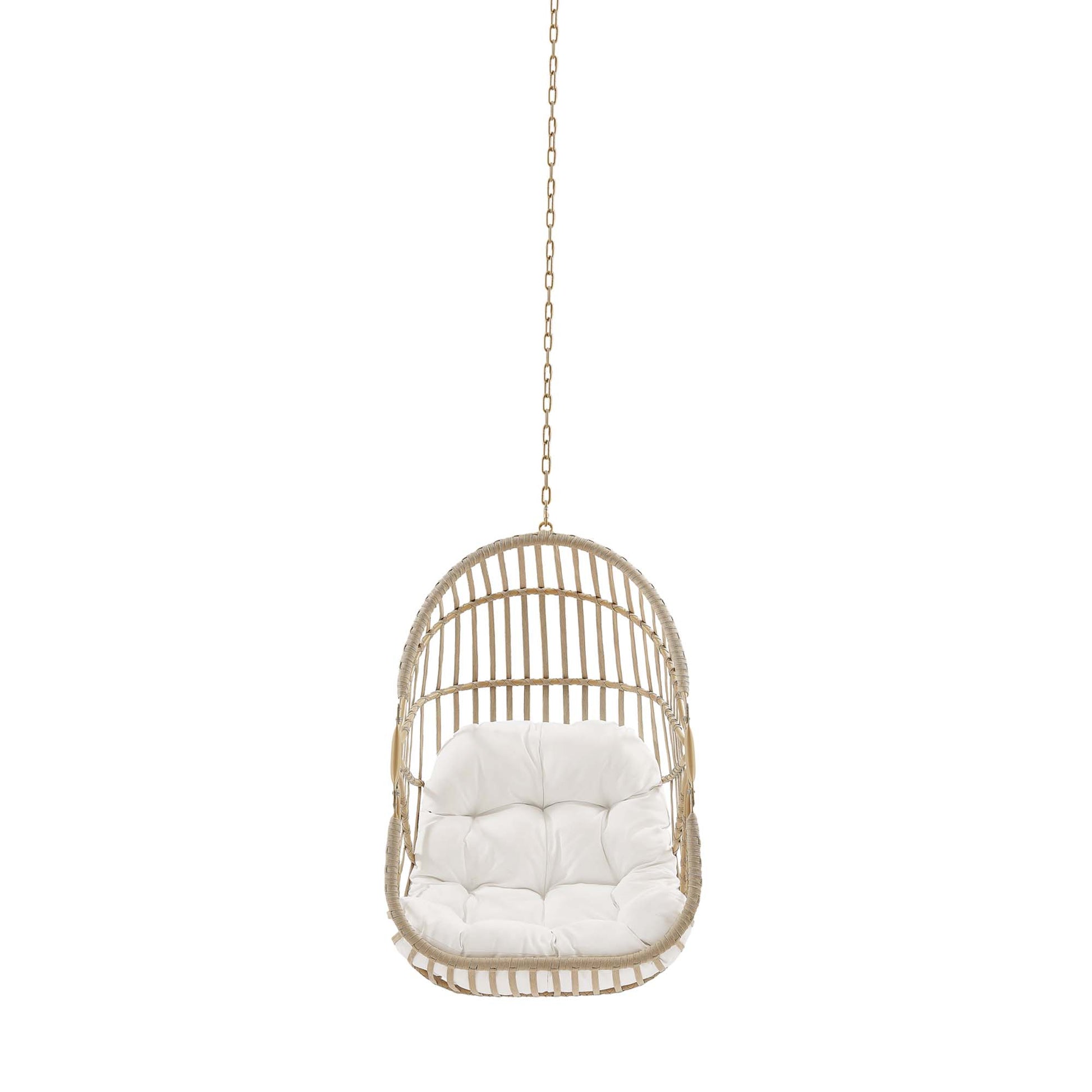 Sway into peaceful relaxation with the Amalie Outdoor Patio Swing Chair. Wrapped in a textured rattan weave, this outdoor chair features a plush removable cushion with an all-weather fabric cover. The sturdy frame is crafted with powder-coated steel, making this patio swing a lasting addition to your porch, patio, backyard, or poolside. This outdoor hanging chair includes a complementary hanging chain allowing it to hang suspended from the ceiling. Amalie's charming coastal design is also popularly used indoors in the lounge area, living room, or bedroom space. Assembly required. Weight Capacity: 330 lbs.