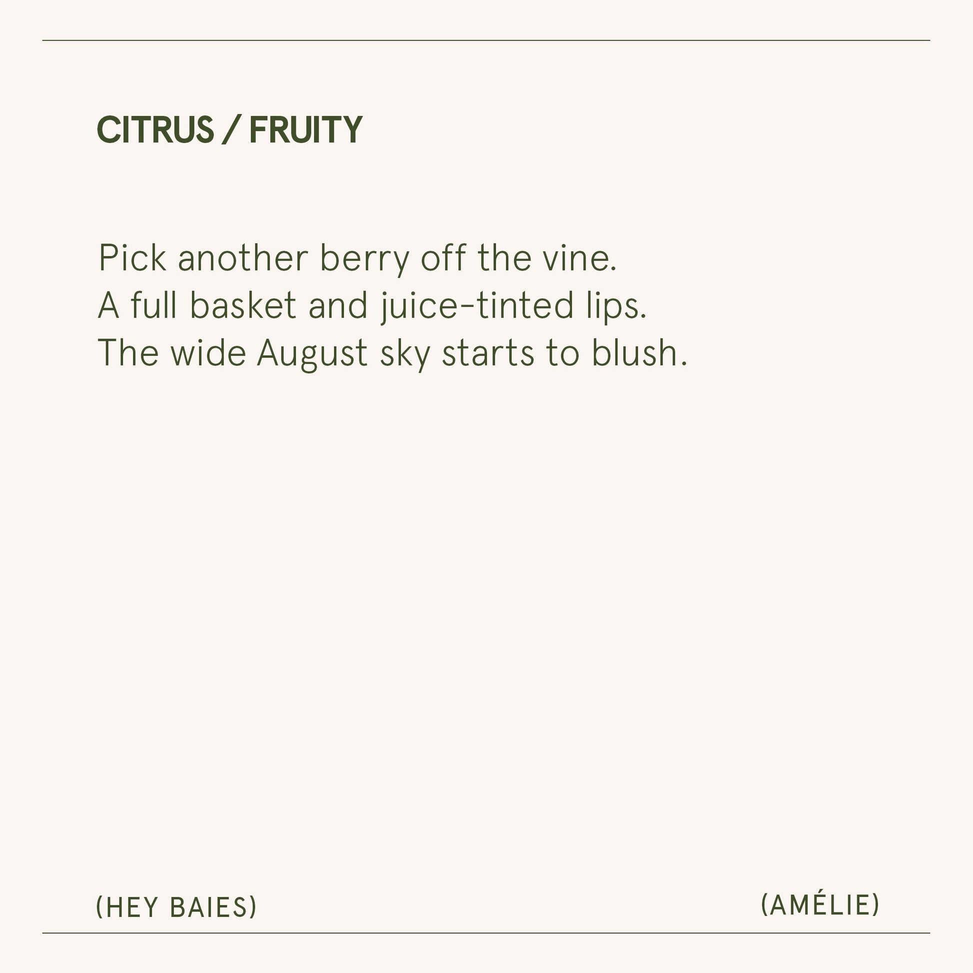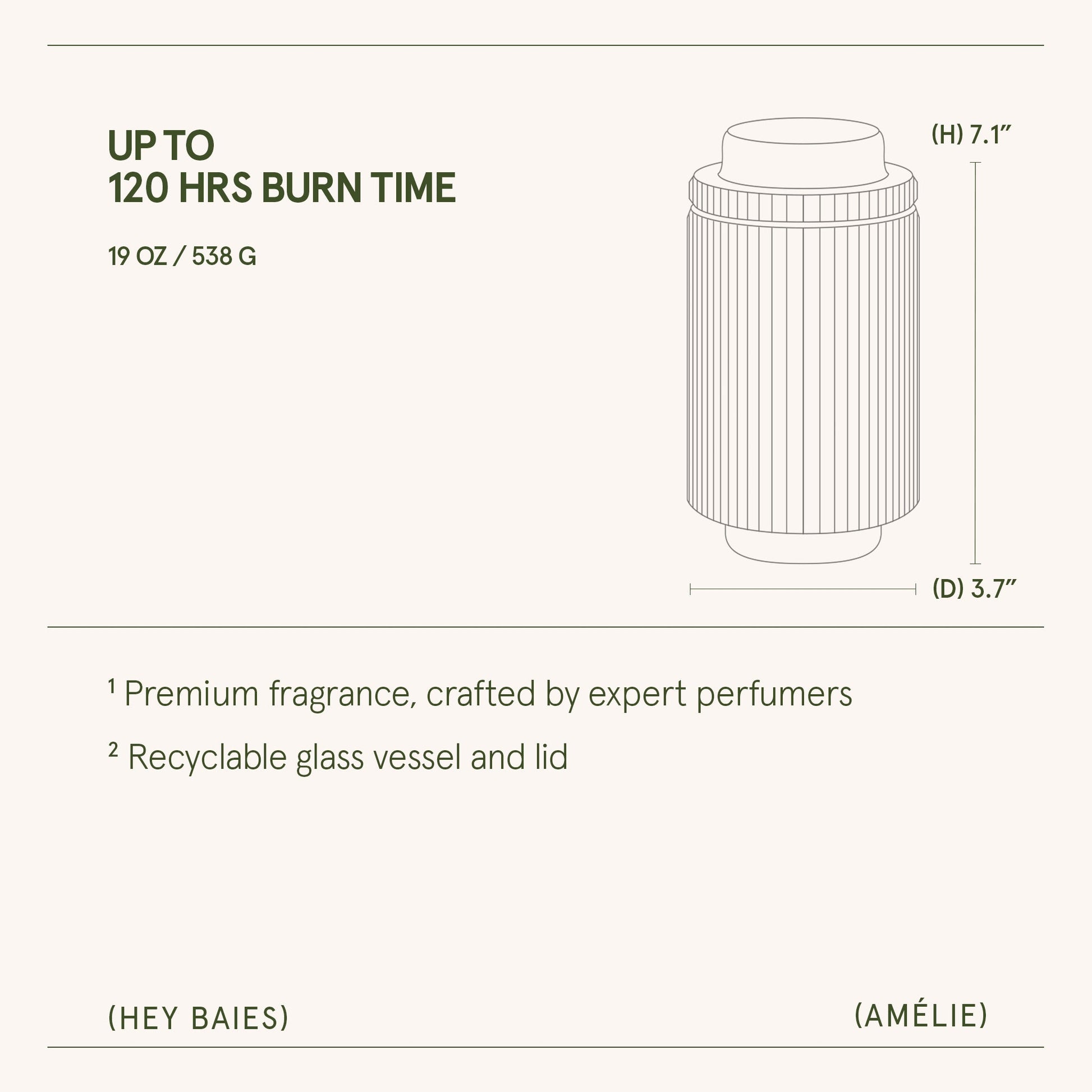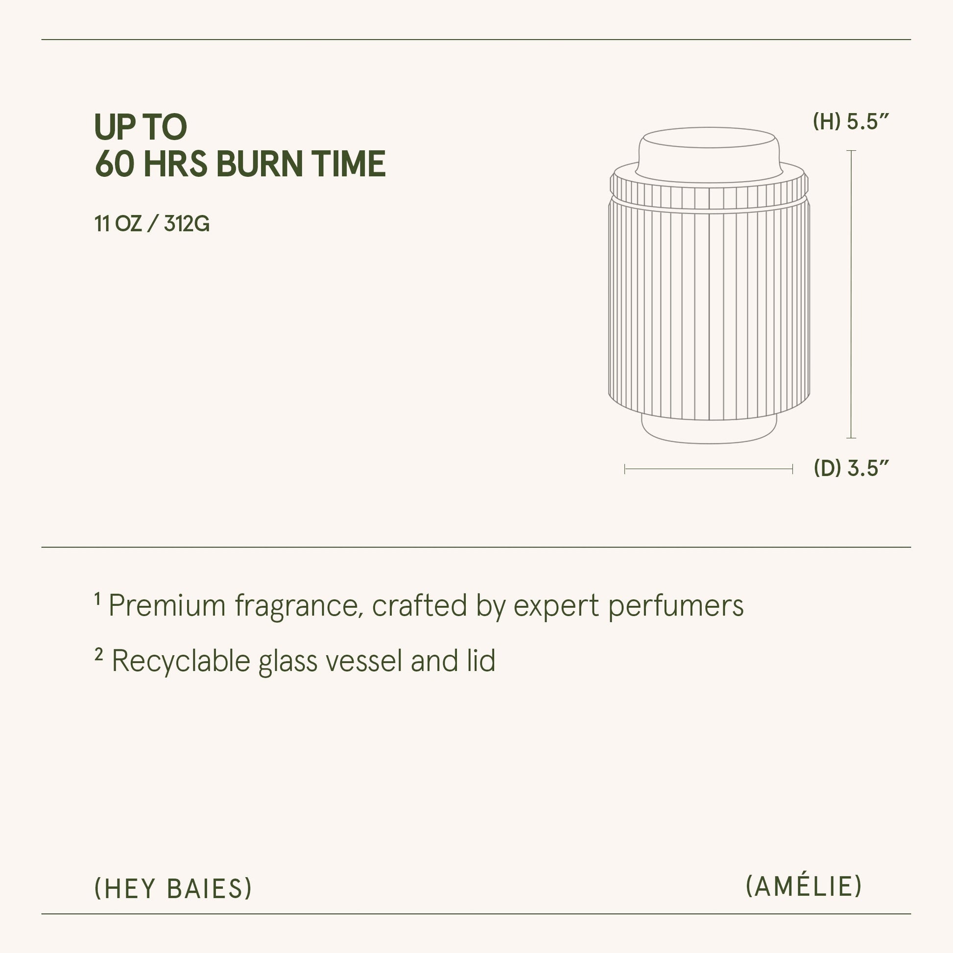 The Amélie Hey Baies Candle delights with the fresh sweetness of cassis and red currant, accented by soft rose petals and grounded with oakmoss. Its universally appealing fruity aroma soothes the senses, creating a calming atmosphere perfect for self-care and relaxation.