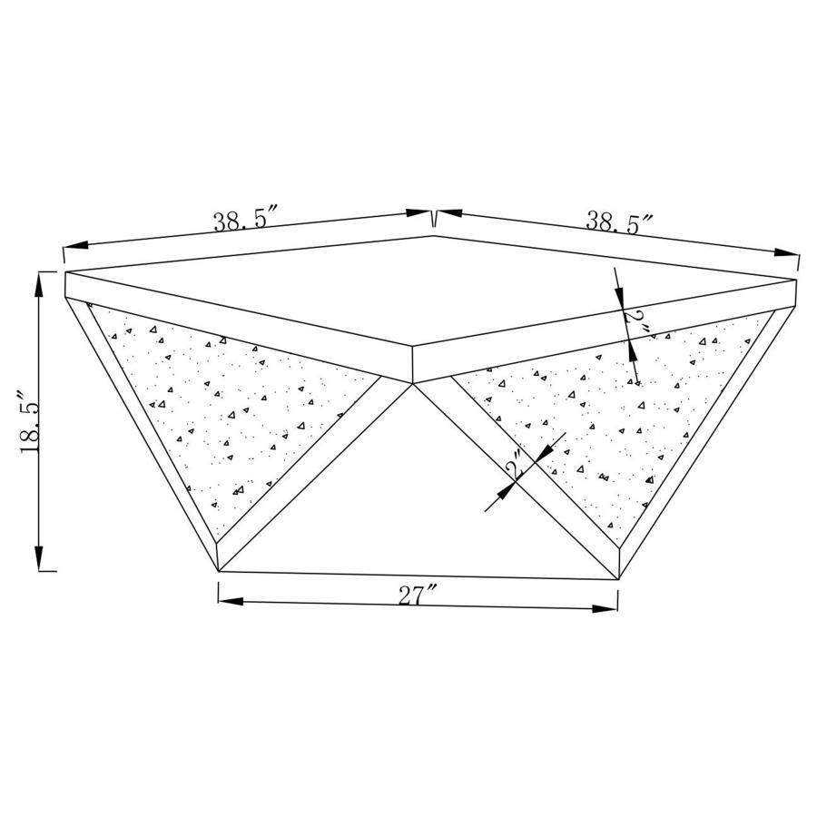 Amplify the style of your living room with this mirrored table. Its bold, diamond-shaped base features triangular mirrored panels with alternating glittery material, adding shimmering sparkle and opulent style. A square, reflective surface tops off the design with a touch of glam, making it an exquisite centerpiece for any contemporary home. This coffee table brings a luxurious and artistic flair to modern living spaces.