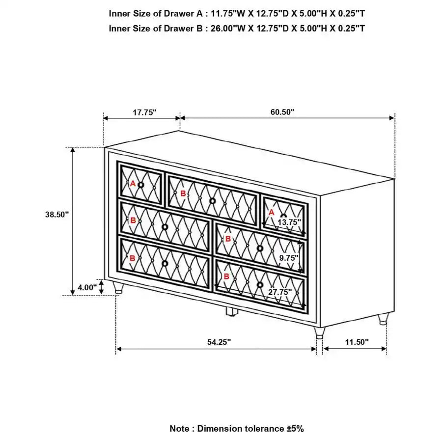 Antonella - 7-Drawer Upholstered Dresser - Ivory And Camel
