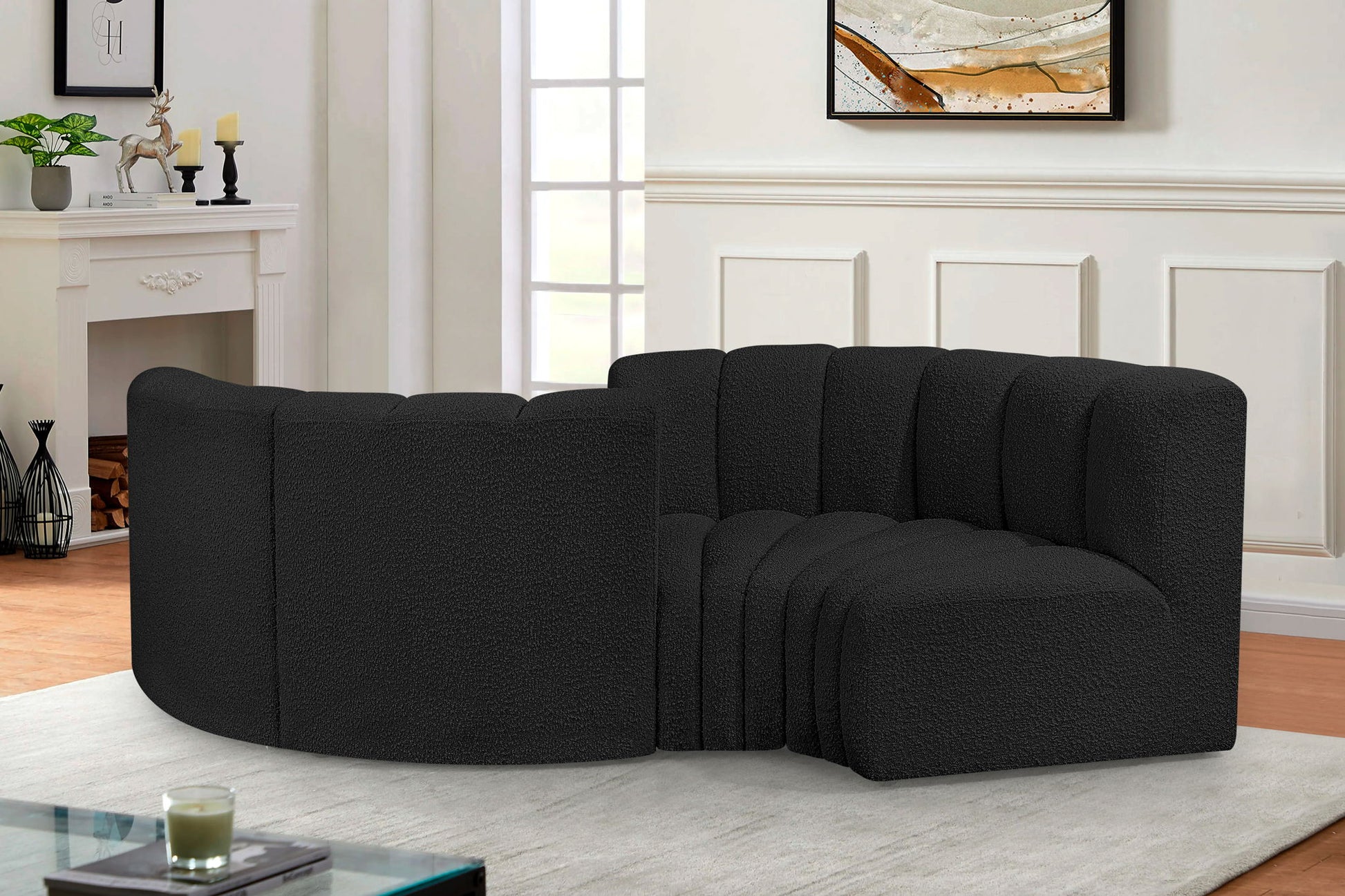 Arc - Boucle Fabric 4 Piece Curved Modular Sofa - Black