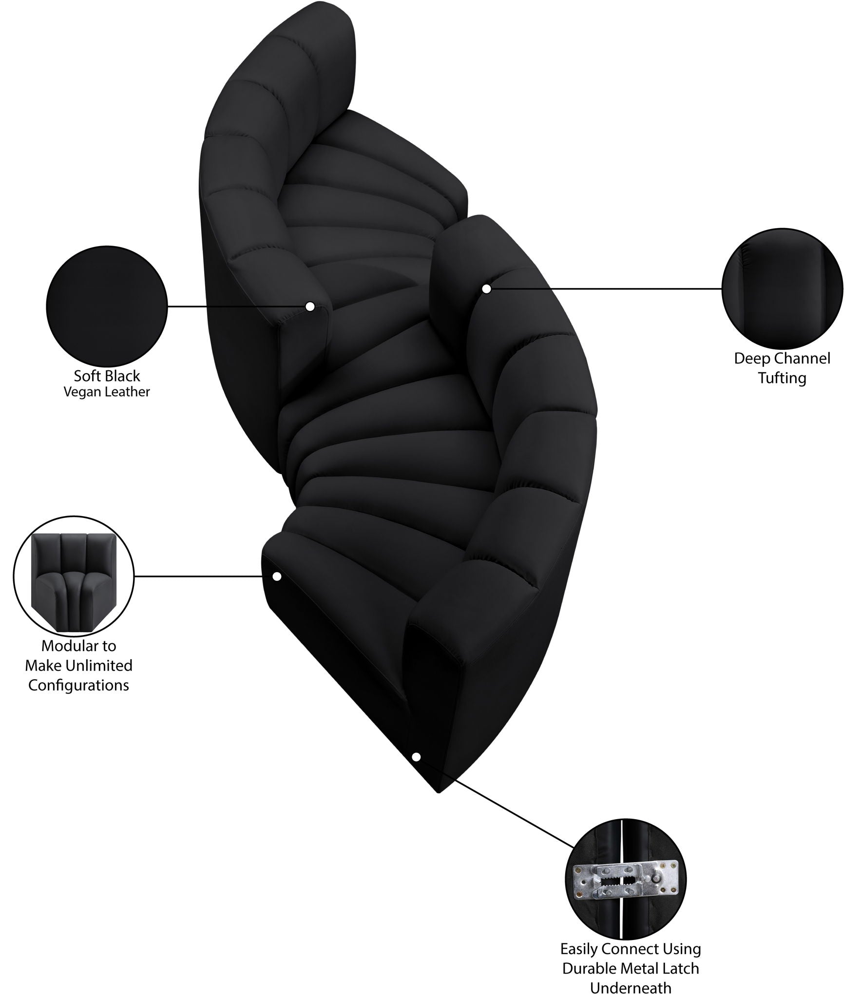 Arc - Faux Leather 4 Piece Curved Modular Sofa - Black