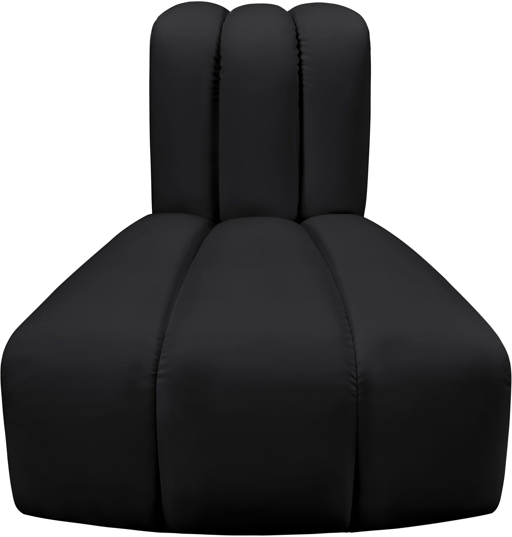 Unleash modern opulence with the Arc Vegan Leather Reversed Corner. Crafted for the modern connoisseur, this chair injects an air of refined luxury into any space. Its sleek silhouette, upholstered in supple vegan leather, exudes timeless sophistication while the deep channel tufting adds textural intrigue, further elevating the chair's visual appeal. The modular design makes it a versatile chameleon, effortlessly adapting to your evolving needs and preferences. Whether you envision it gracing a chic living room corner, basking in the glow of a bedroom window, or adding a touch of drama to a home office, the Arc seamlessly complements your unique interior aesthetic.