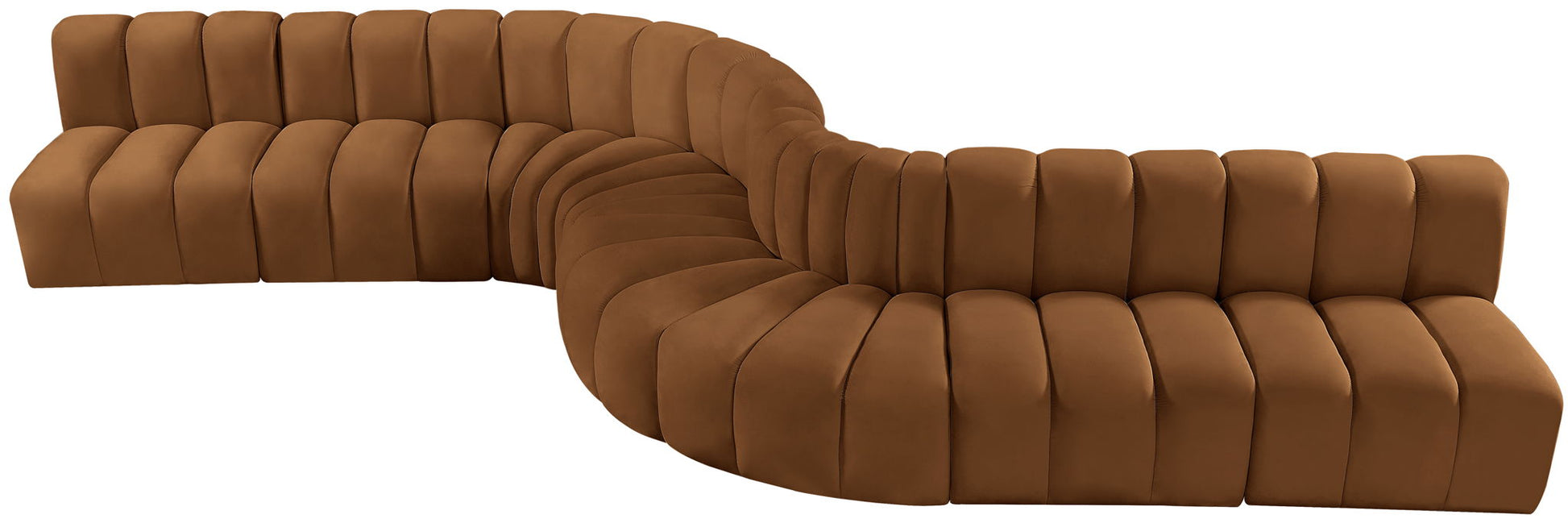 Meridian Furniture Arc - Velvet 8 Piece Curved Modular Sofa - Saddle