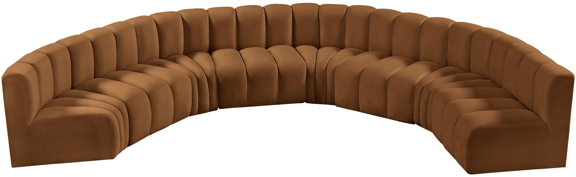 Meridian Furniture Arc - Velvet 8 Piece U-Shaped Modular Sofa - Saddle