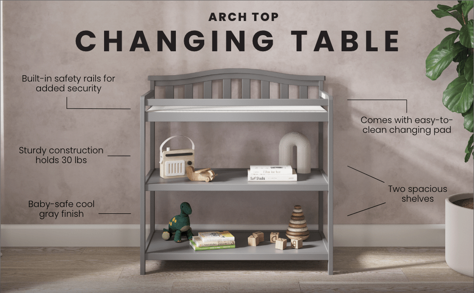Arch Top Baby Changing Table, Cool Gray