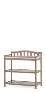 Designed with practicality in mind, the changing table boasts two spacious open shelves, ideal for storing books, toys, and essential items as your child grows. Enhanced safety is a hallmark of this design, featuring built-in safety rails and straps that provide additional security during use. The water-resistant changing pad ensures easy cleanup, allowing parents to maintain a tidy environment in a bustling nursery.
