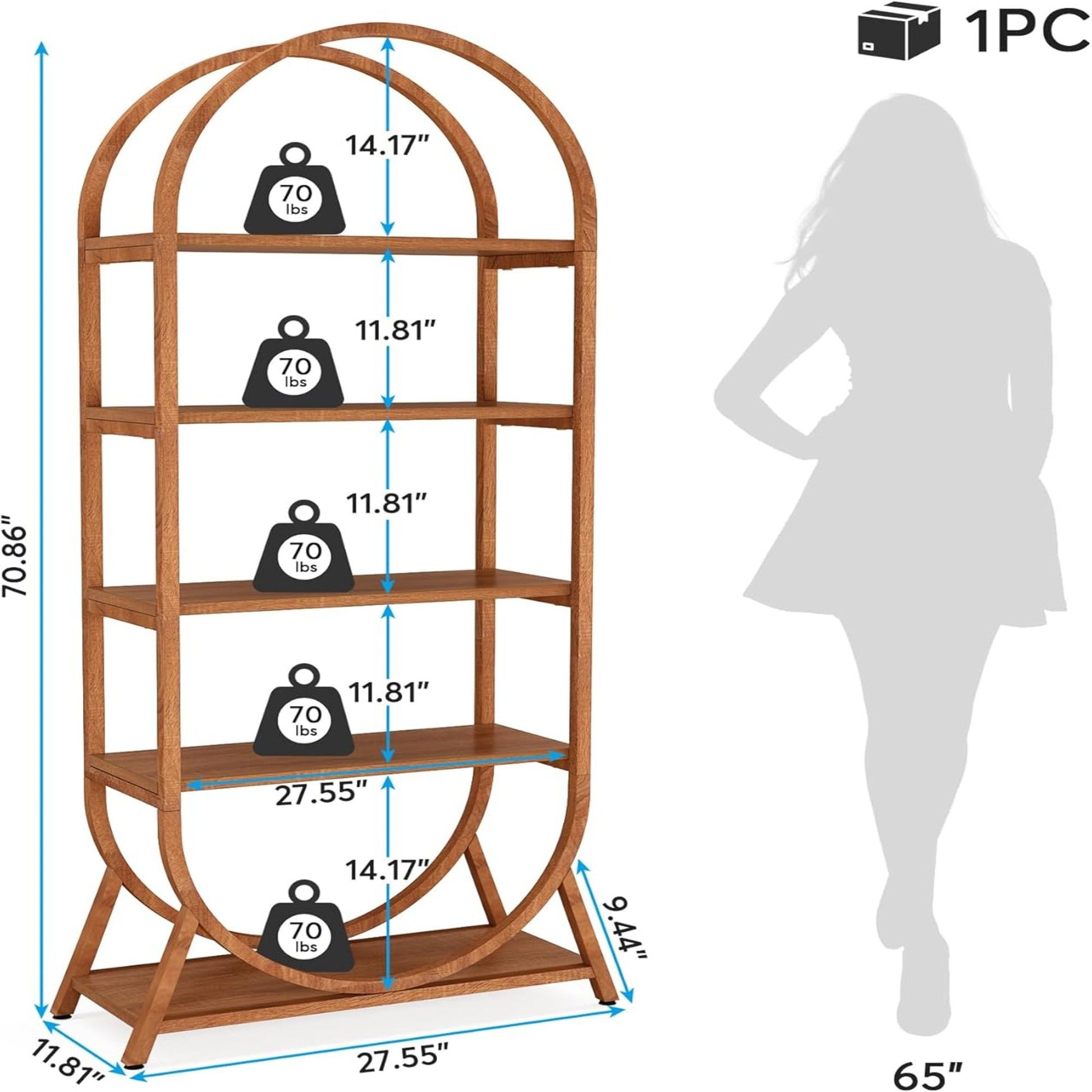 Arched 5 Tier Open Bookshelf For Office - Brown