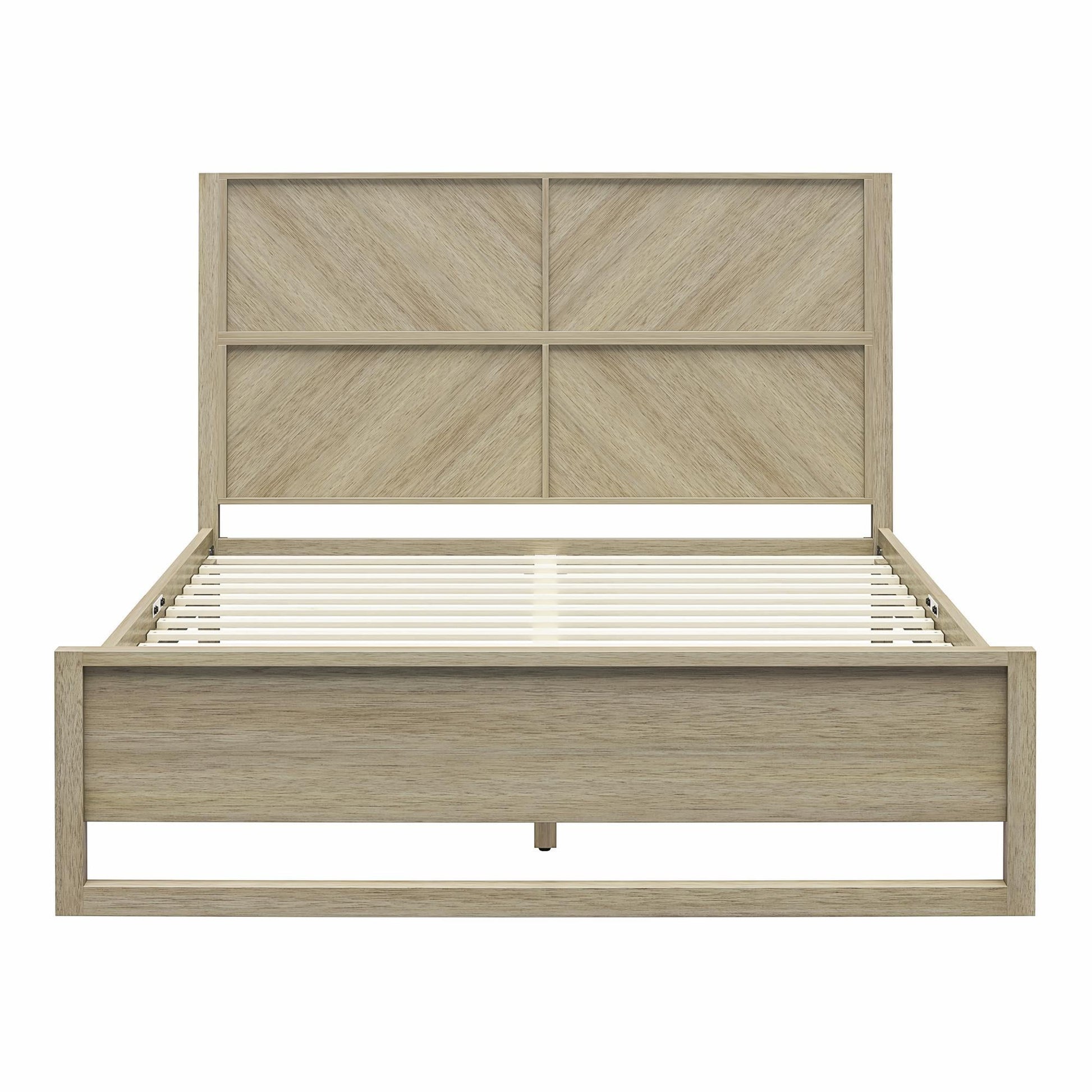 - Modern Boho Design: Features genuine acacia veneer with symmetrical chevron grain and cross paneling on the headboard
