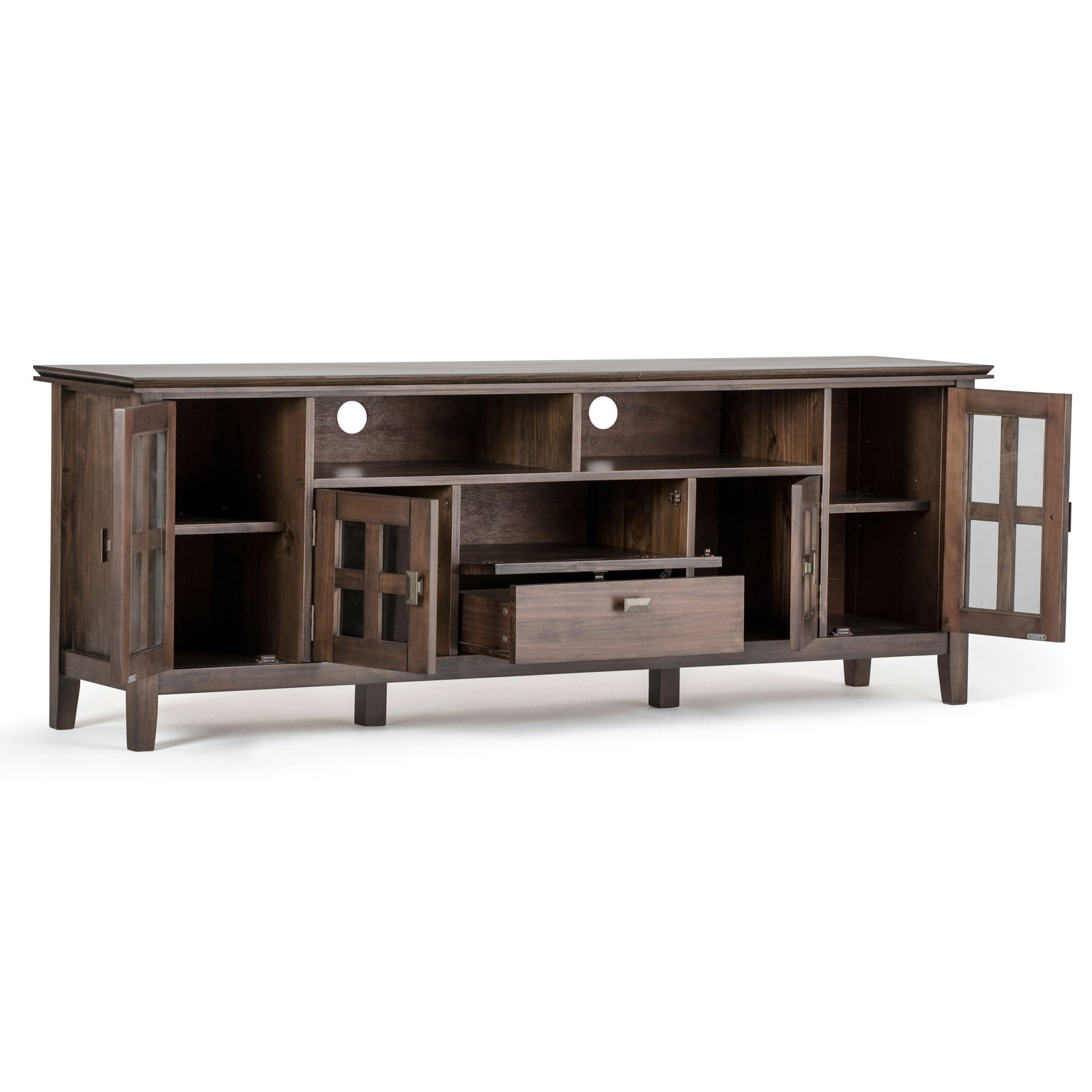 - Extra wide TV Stand is perfect for TVs up to 80 inches includes cord management cut-outs for easy installation of TV and media components