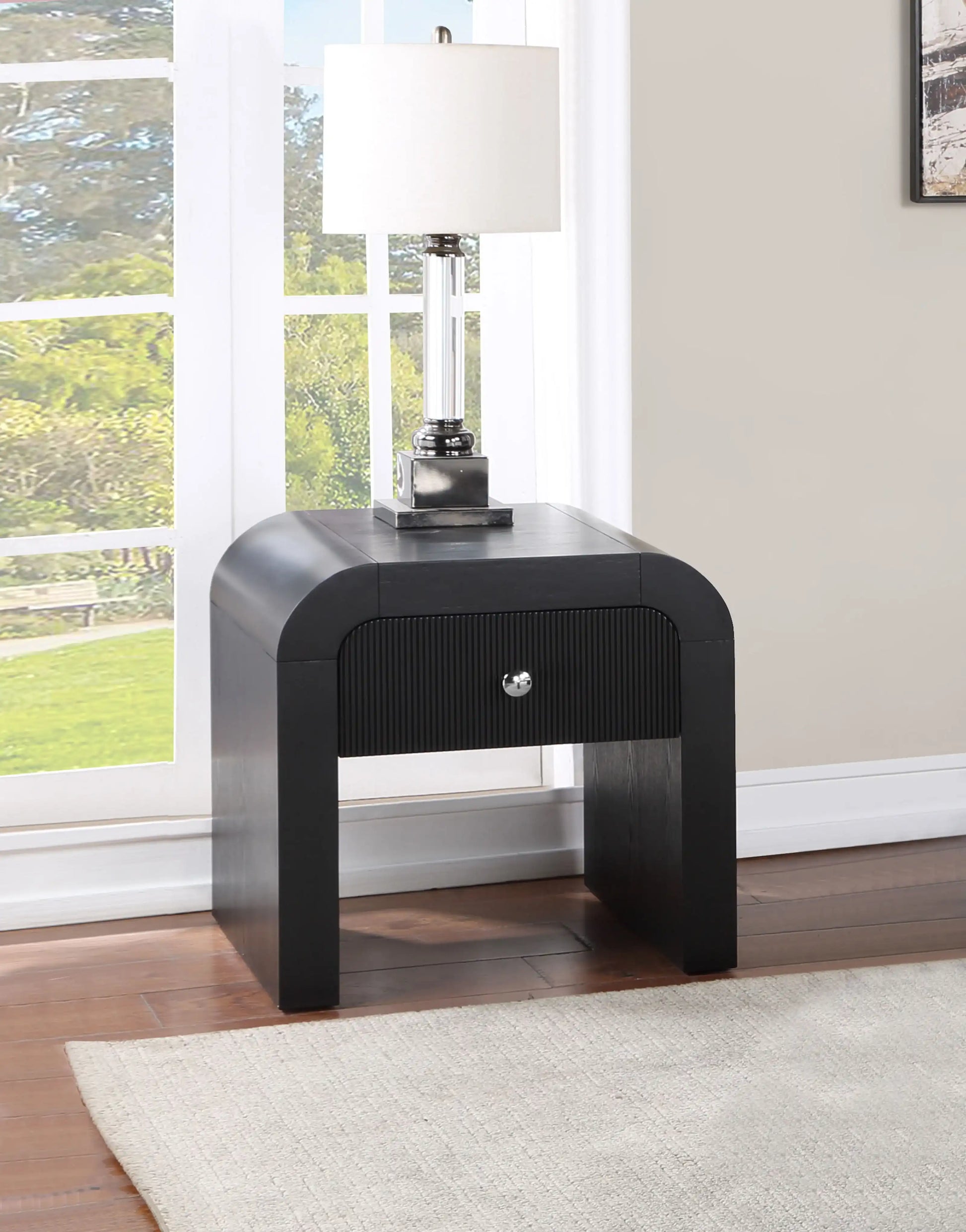 Make organizing a stylish affair when you bring home this Artisto end table. This beautiful end table features an elegantly eye-catching design with its rich wood veneer finish and its textured drawer front design. The storage drawer give you oodles of room for storing items out of sight and out of mind, and the roomy drawer make sure that organizational power is at your fingertips.