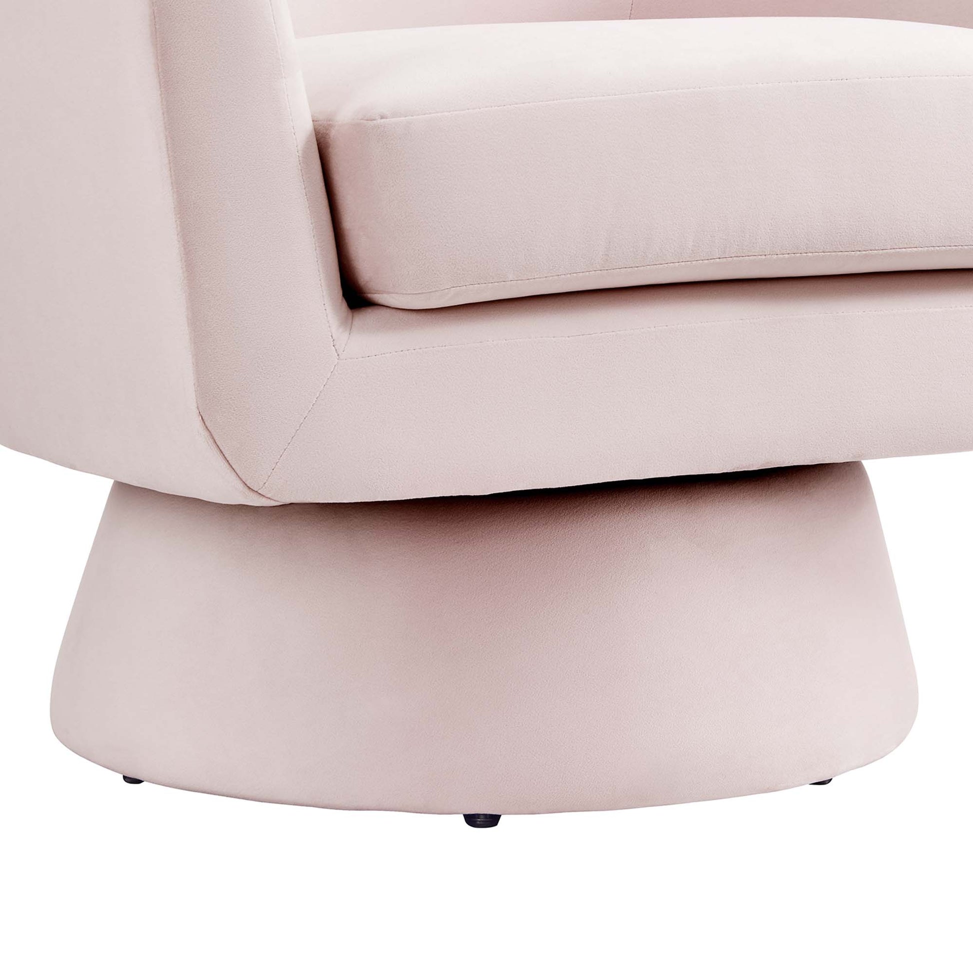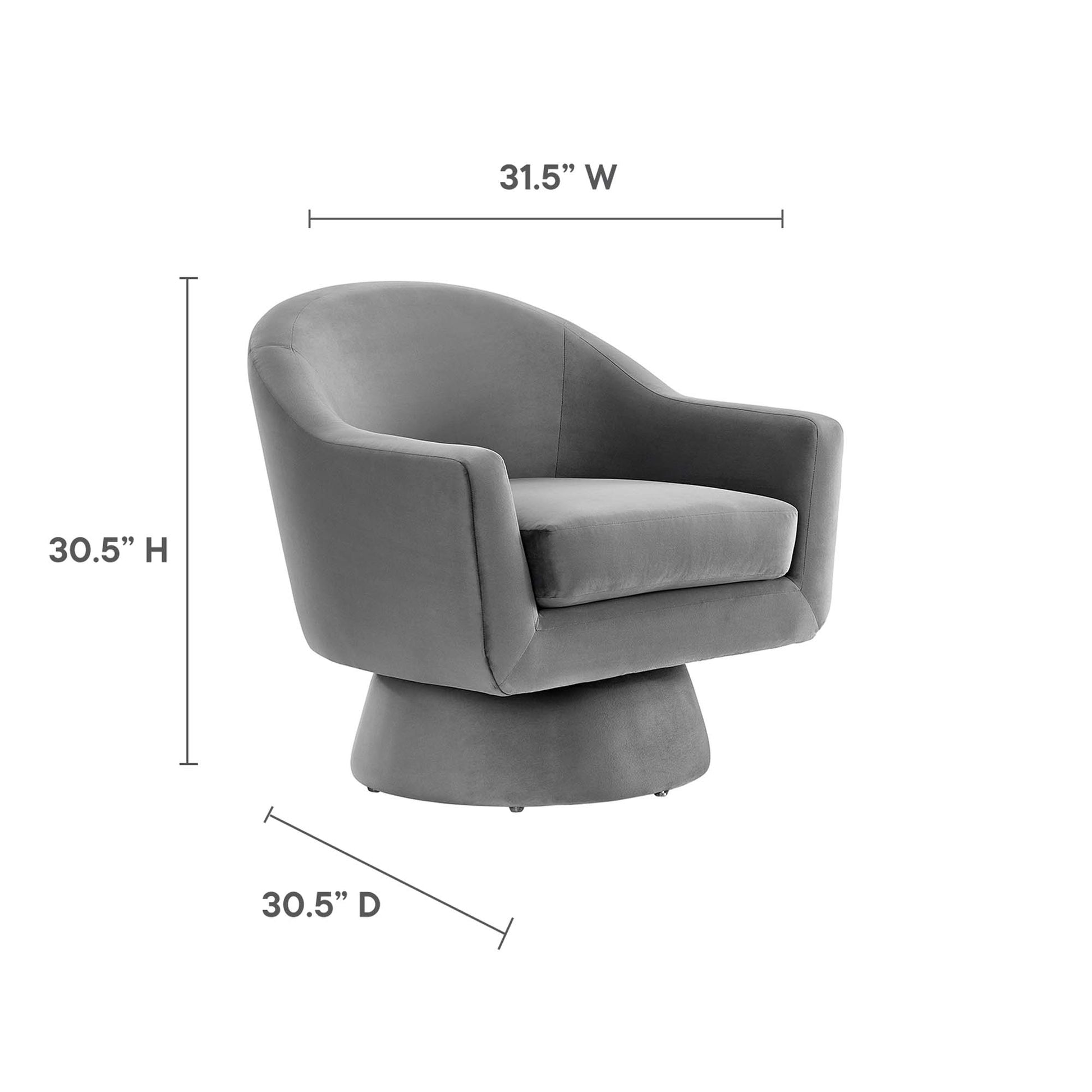 Initiate luxe texture and a sleek, modern silhouette to your living room, bedroom, office, or other seating areas with the Astral Performance Velvet Swivel Chair. Boasting sweeping armrests and a tailored profile, this accent chair is upholstered in stain-resistant performance velvet fabric. Dense foam pads the chair and the removable seat cushion to offer a premium seating experience. Suiting the needs of any moment, this upholstered chair rests on a tapered base complete with 360� swivel. Includes non-marking foot pins to protect flooring. Minimal assembly required. Weight Capacity: 330 lbs.