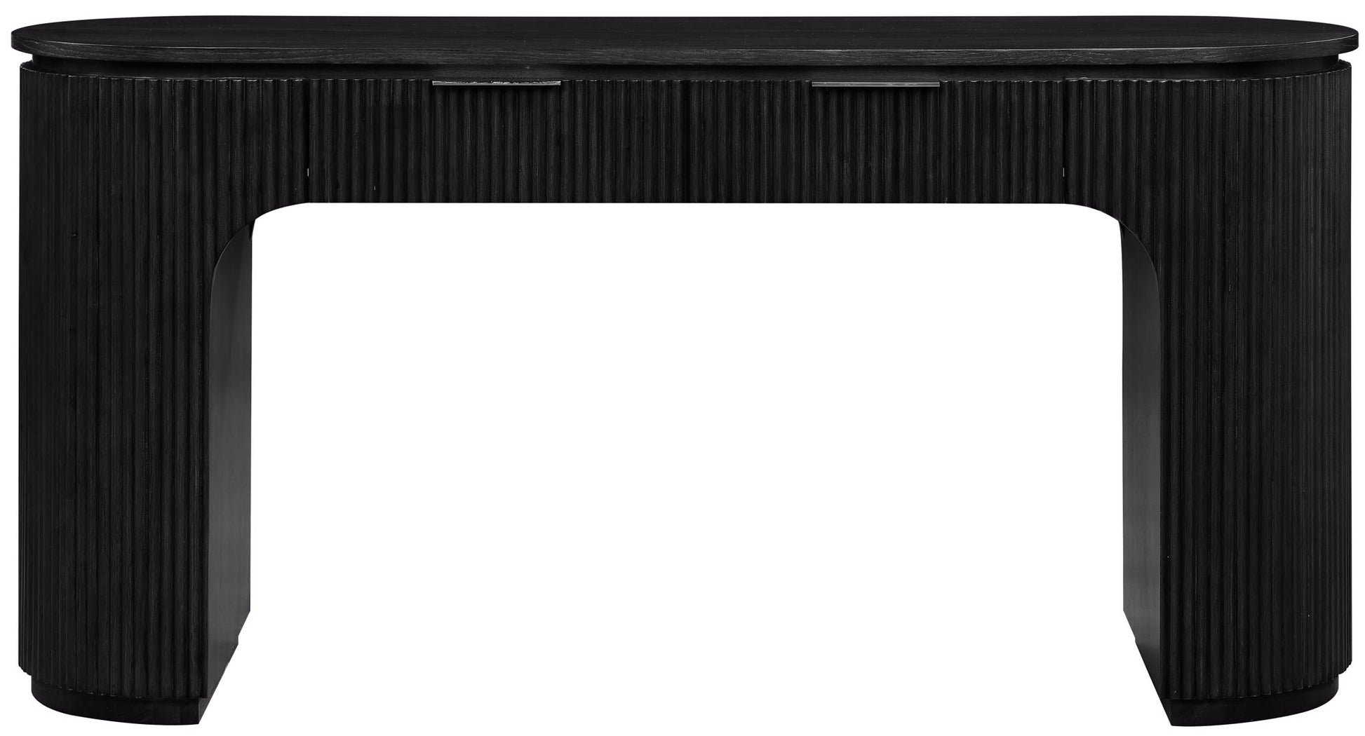 Texture takes the lead with the Astrid solid wood and oak veneer desk. Wrapped in sleek fluted wood and finished in a deep, moody tone, this contemporary design is both bold and refined. Whether styled in a bedroom or living space, it delivers effortless storage with standout style.