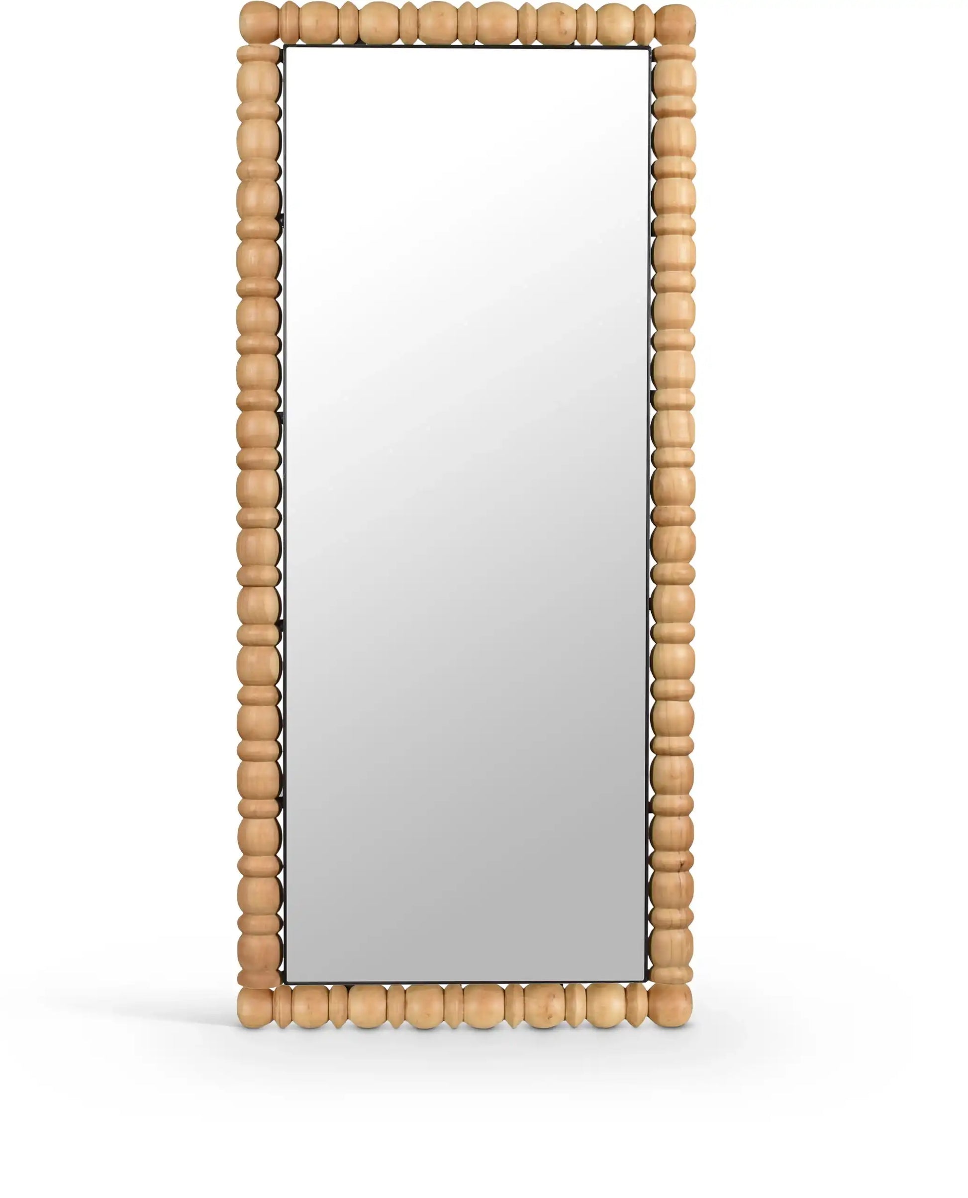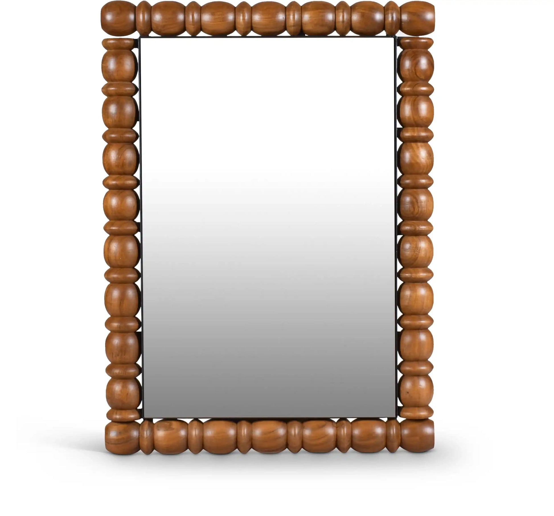 Reflect timelessness and classic beauty with just a touch of modernity when you hang this lovely Aubrey mirror in your room. An elegant and sophisticated wall mirror for any room, this beautiful piece is sized big enough to hang over a mantle or serve as a bathroom mirror above the sink. A solid acacia wood frame gives it durability while the finish makes it easy to coordinate the mirror with existing furnishings in your room.