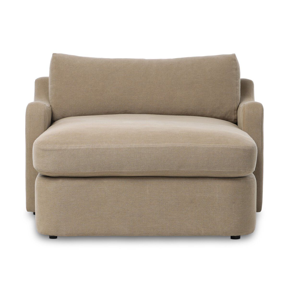 Designed for true sink-in comfort, the two-over-one boxed cushions combine a feather and fiber blend with supportive S-spring suspension. Upholstered in 100% flax linen, the Aurelia Chaise Lounge offers a naturally breathable, textural finish that only improves with time. This refined design is part of an exclusive collaboration between Amber Lewis and Four Hands, bringing a thoughtful, lived-in sensibility to a timeless form.