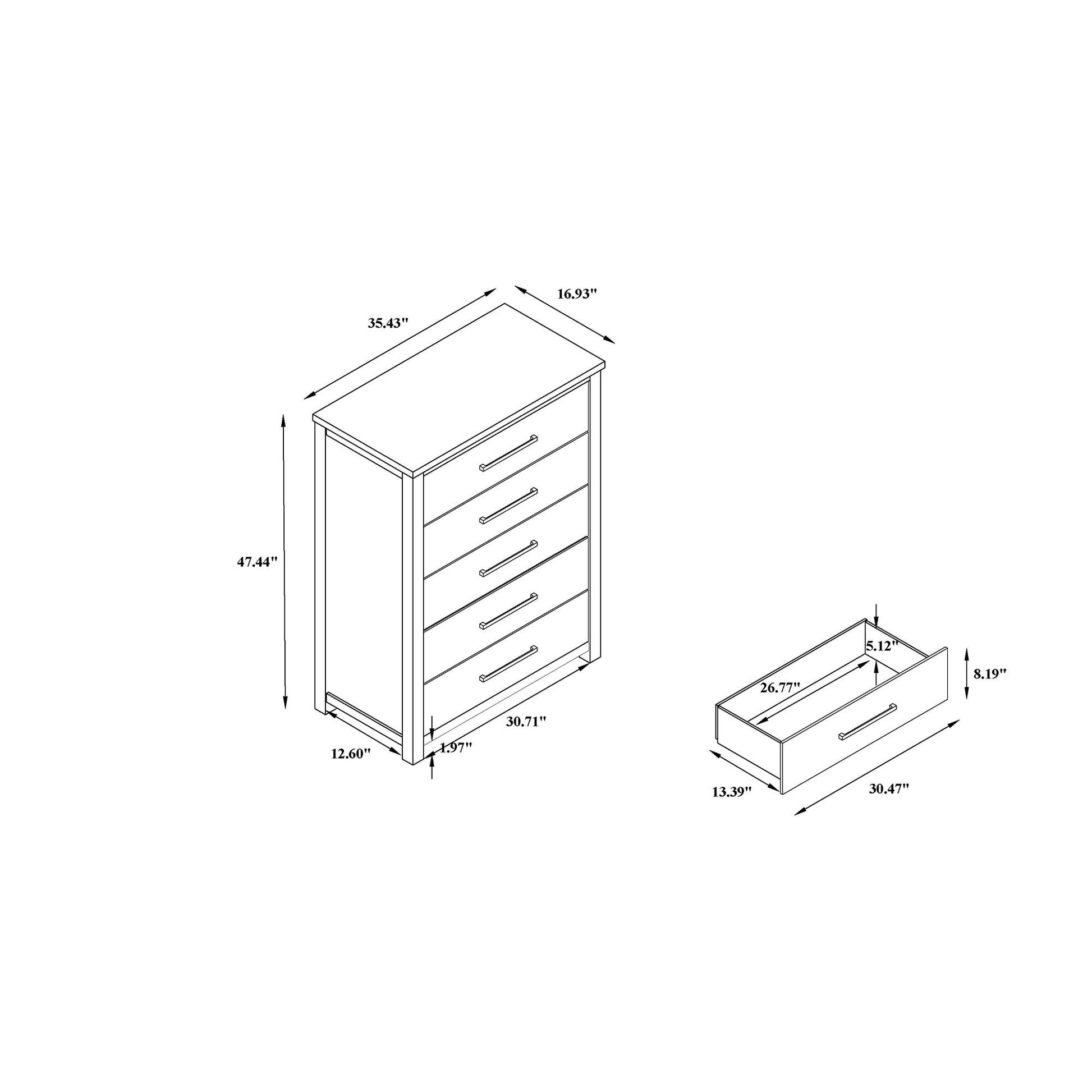 - 5PC Set Included: Complete bedroom solution with bed, dresser, chest, nightstand, and mirror
