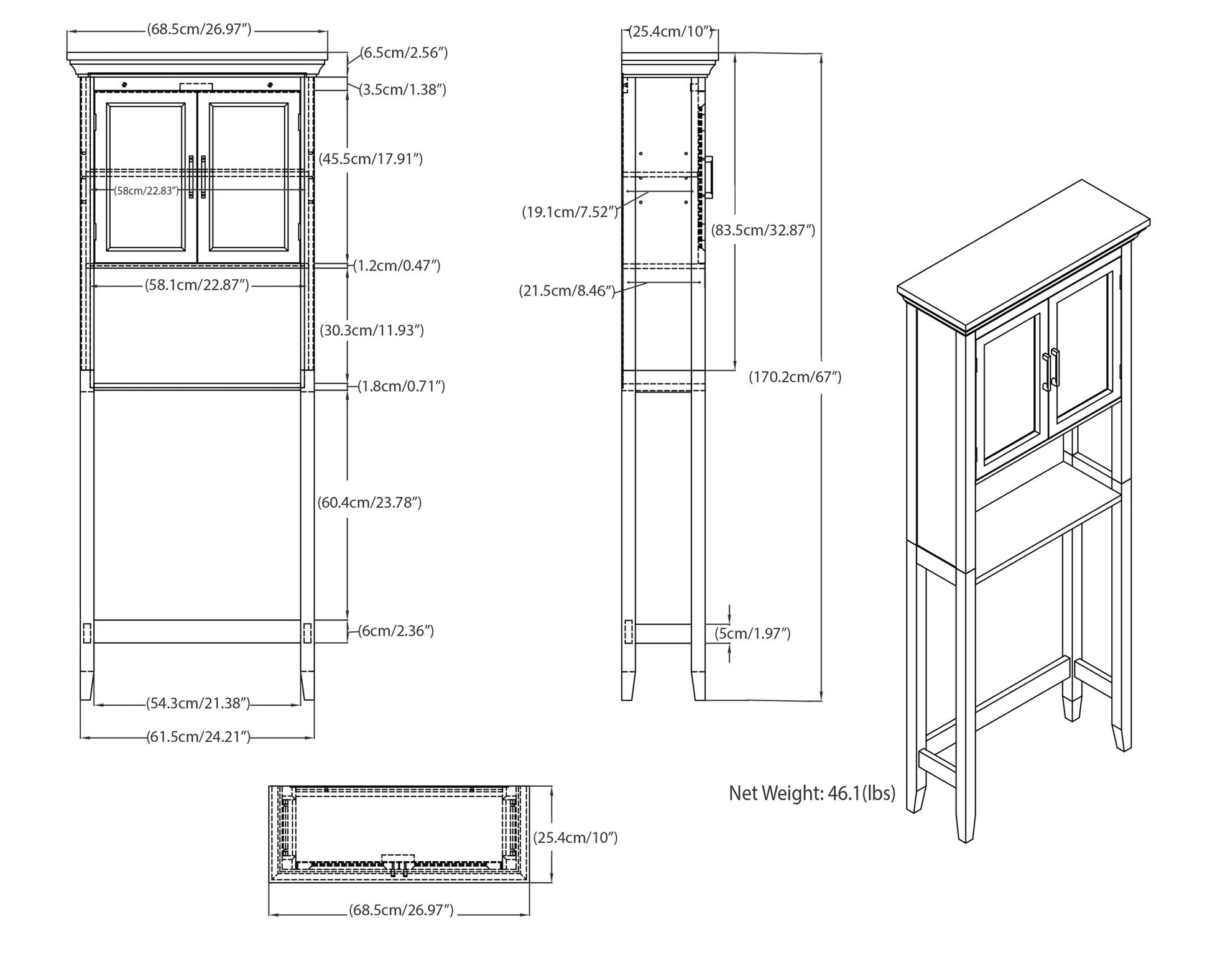 27.0"W x 10.0"D x 67.0"H - 41.9 lb