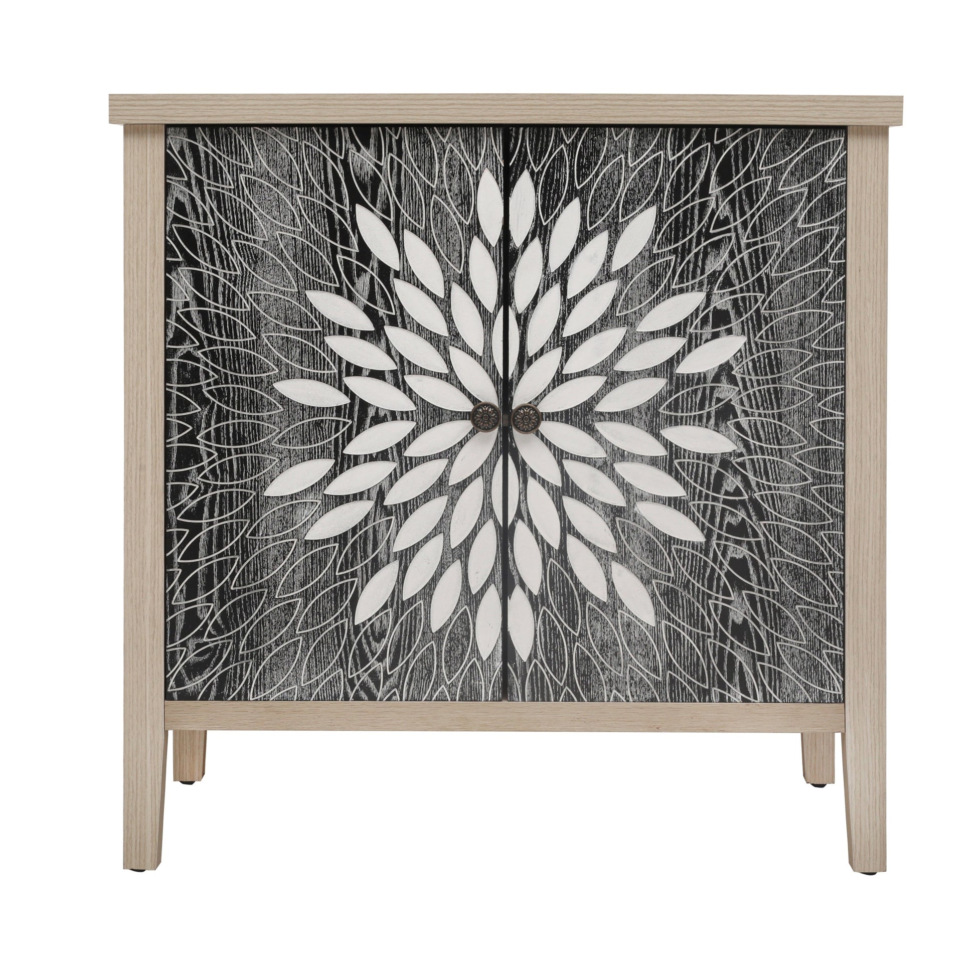 2-Door Carved Storage Cabinet with Adjustable Shelf