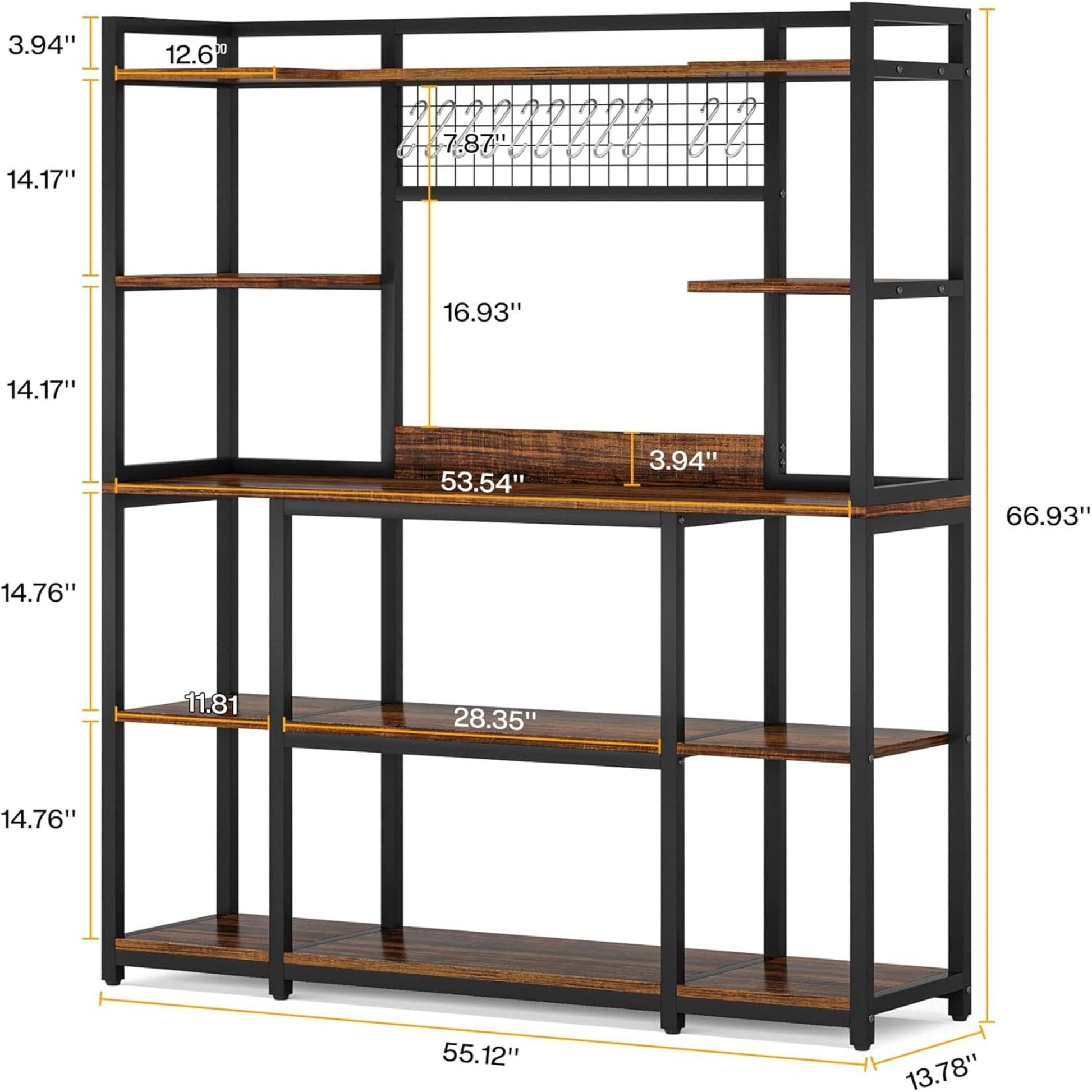Baker's Rack With Hutch, 5 Tier Kitchen Storage Shelf, Freestanding Utility Pantry Organizer With Hooks And Microwave Stand - Black