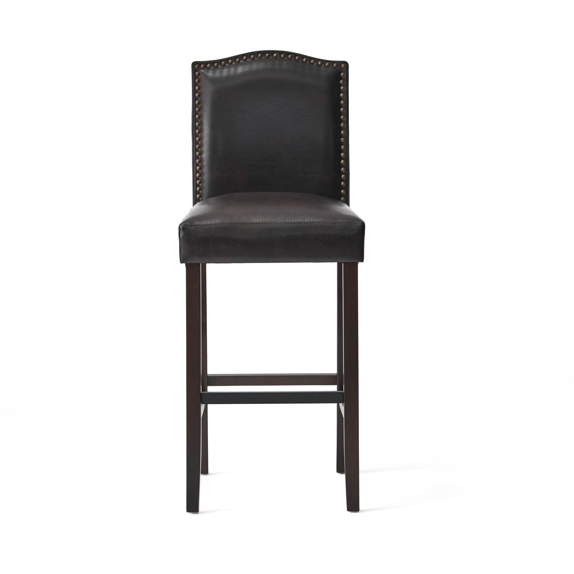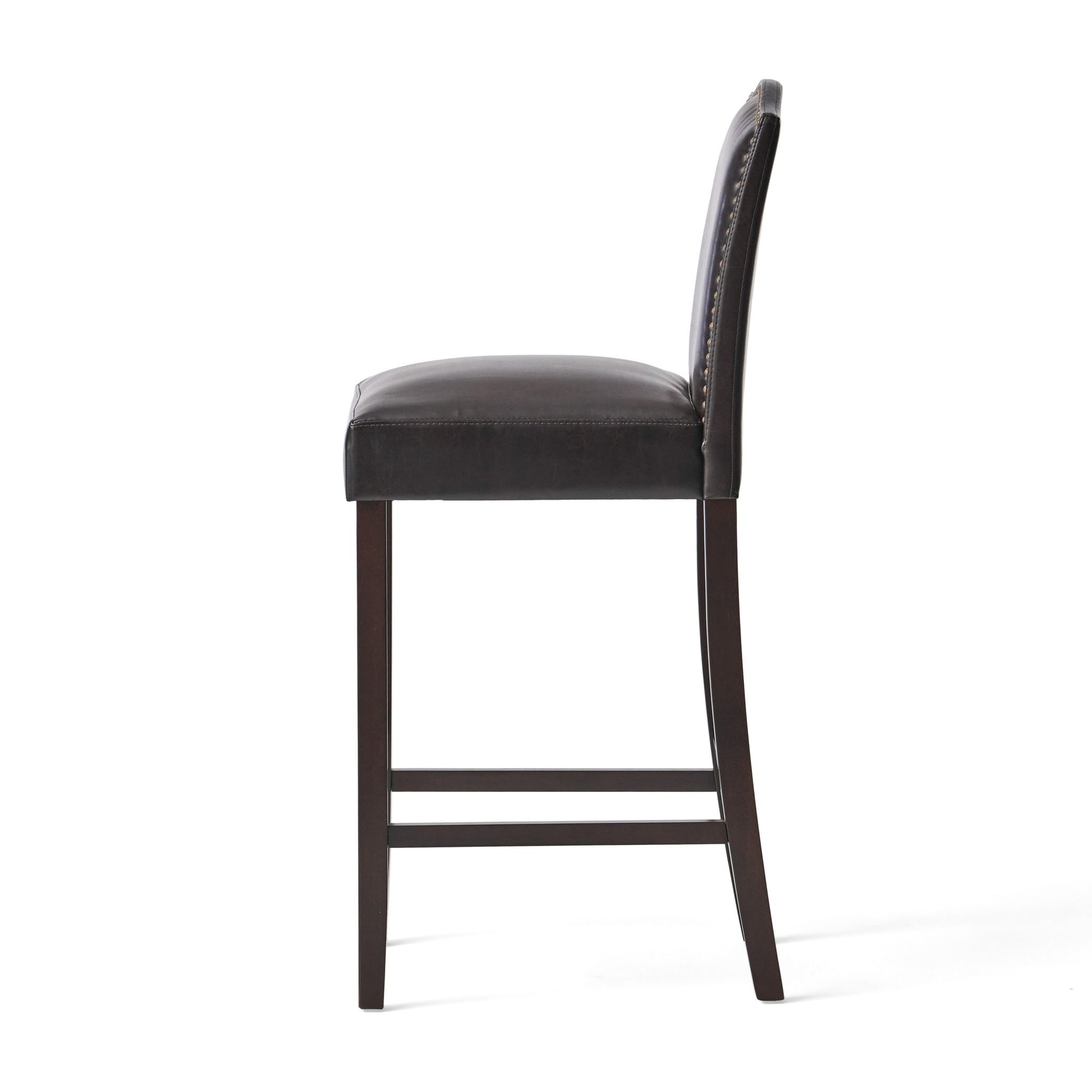 Bar Stools (Set of 2), Upholstered Barstools Armless, Rubber Wood Leg - Brown