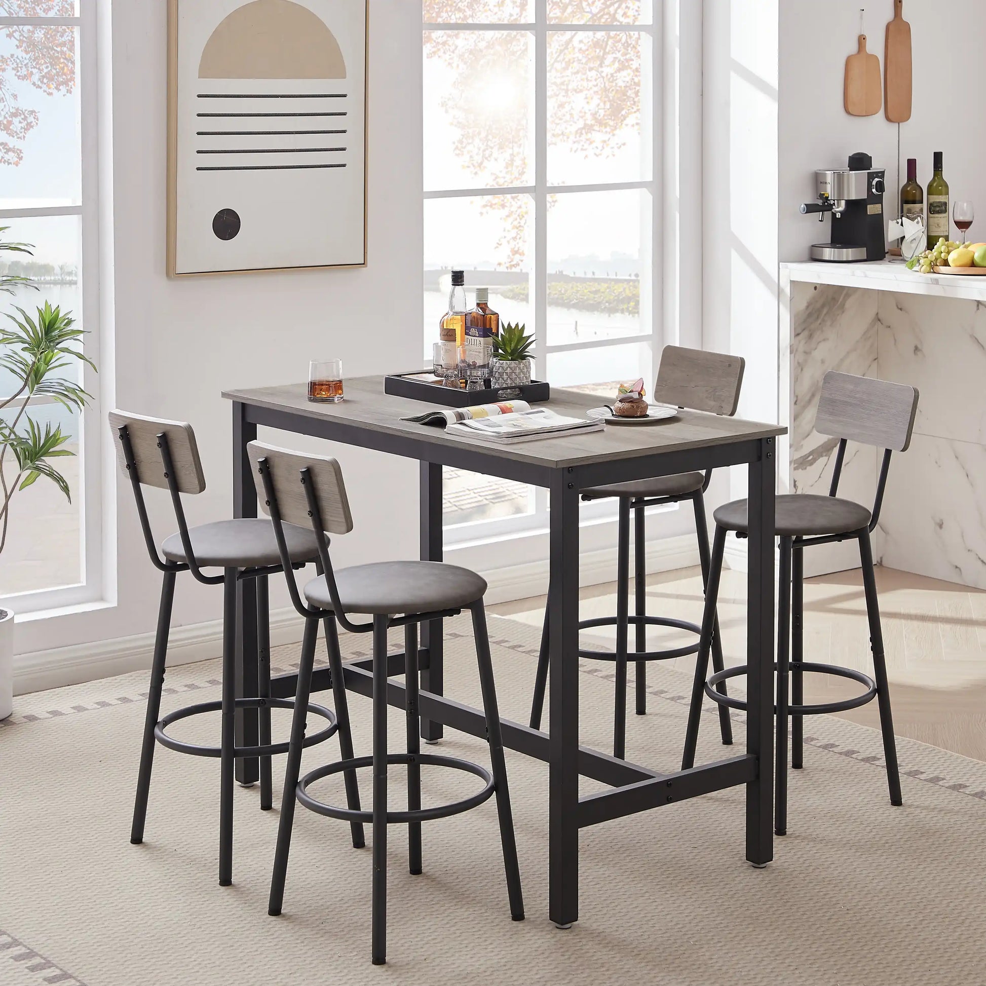 - Your bar table and stools, you have the final say! You can pull the chairs out from under the table at any time and enjoy a drink with family and friends.it will make you feel the relaxed atmosphere.
